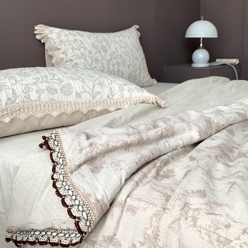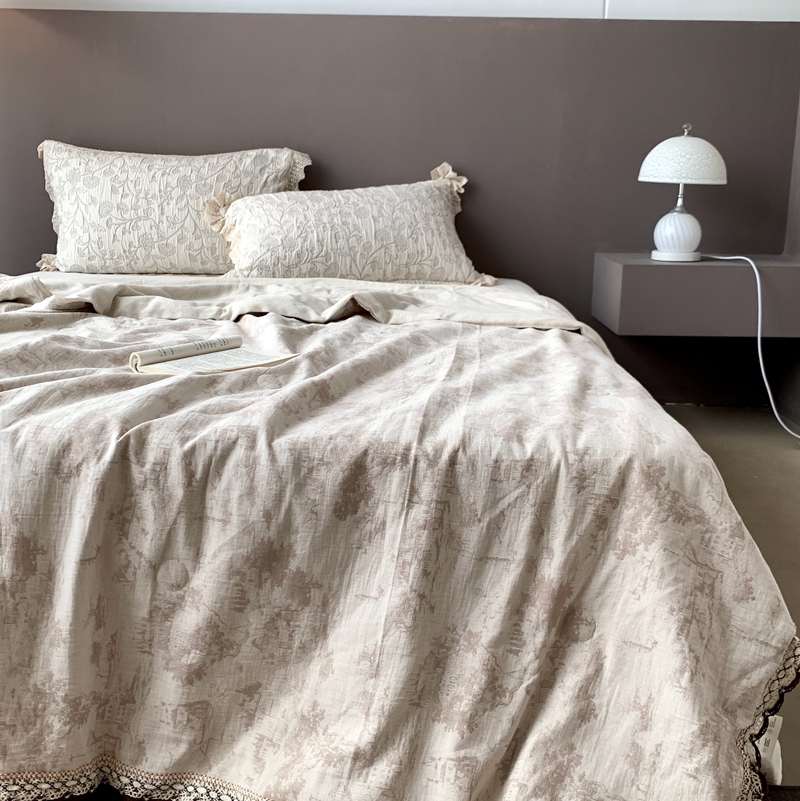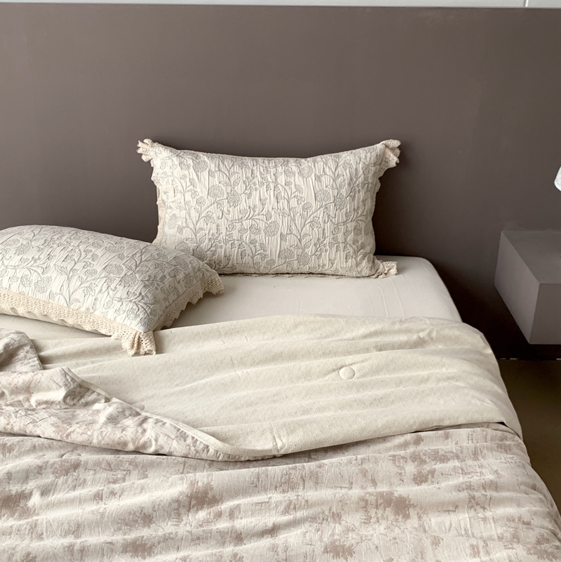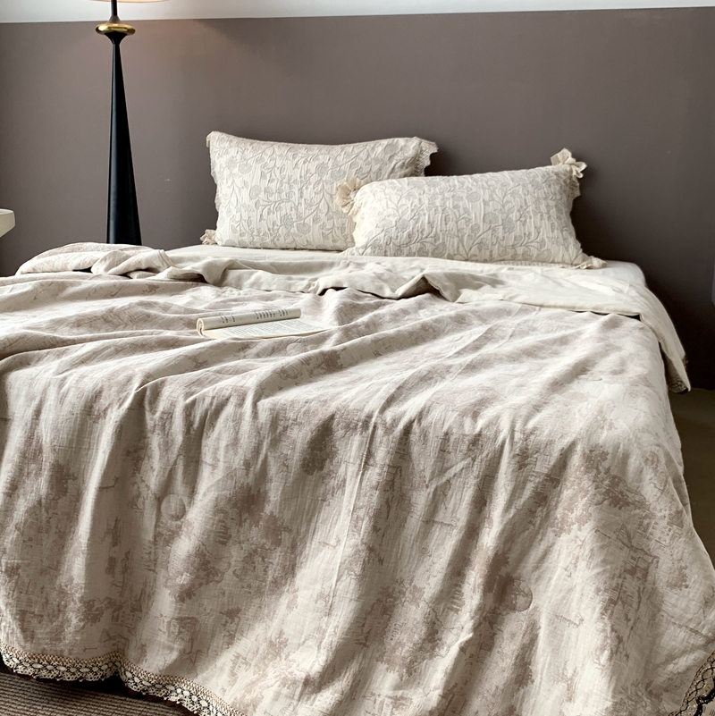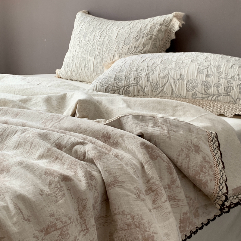 凡客2025新款棉麻色织提花双层纱蚕丝棉夏被(镂空花边款) 忆江南-本色