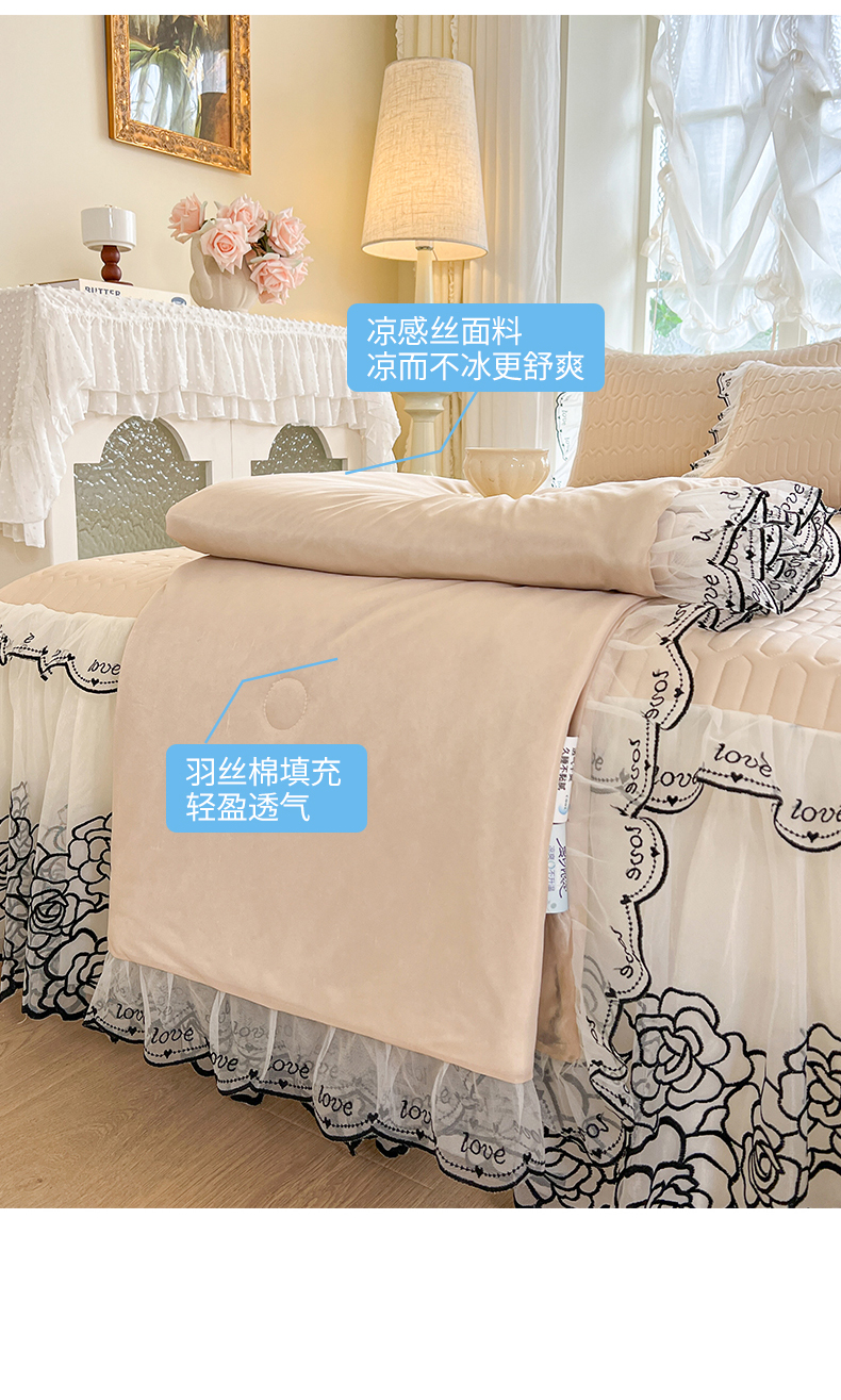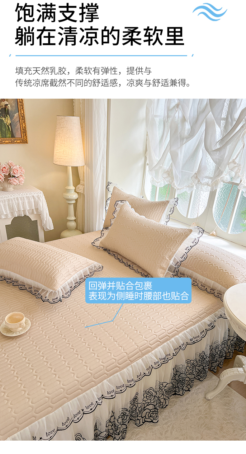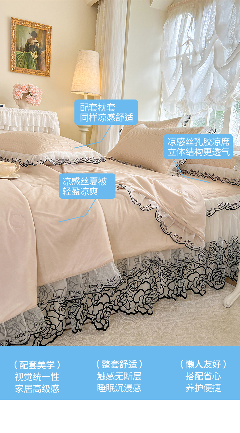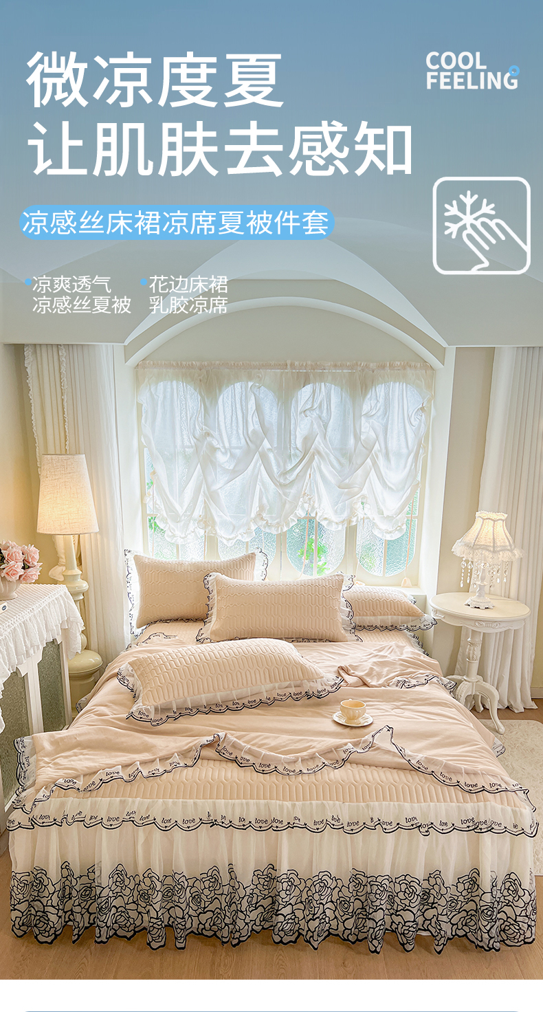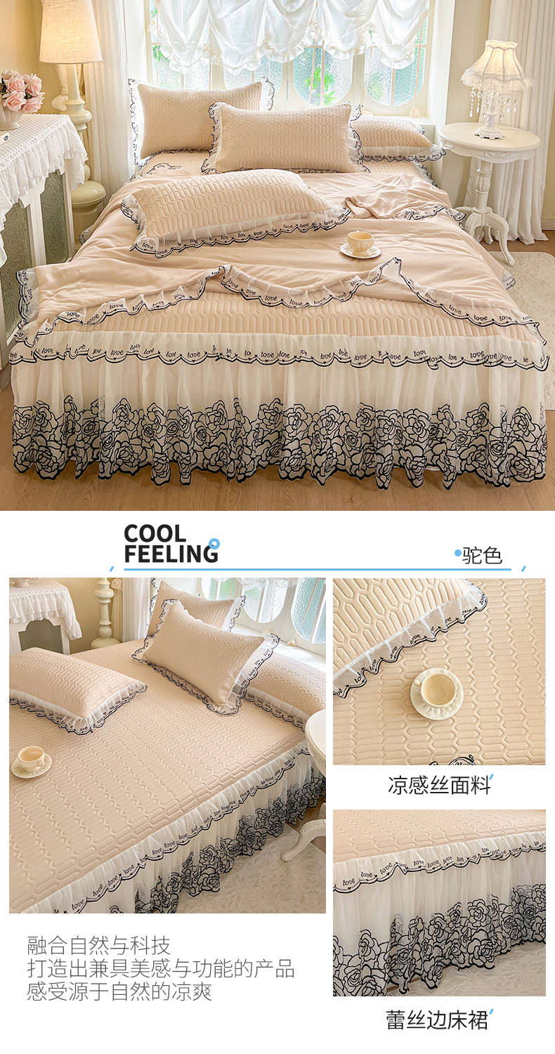 2025新款凉感丝乳胶凉席床裙款夏被四件套-爱恋 驼