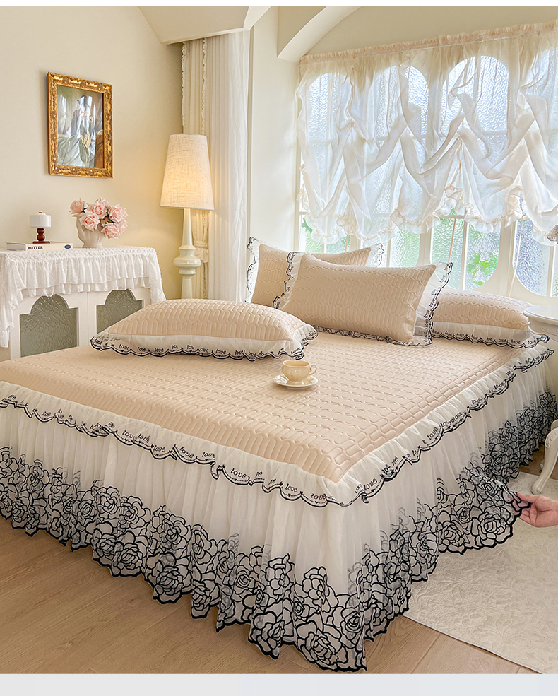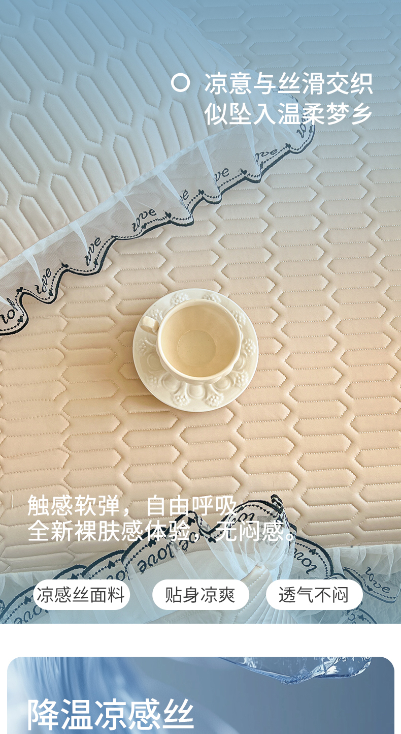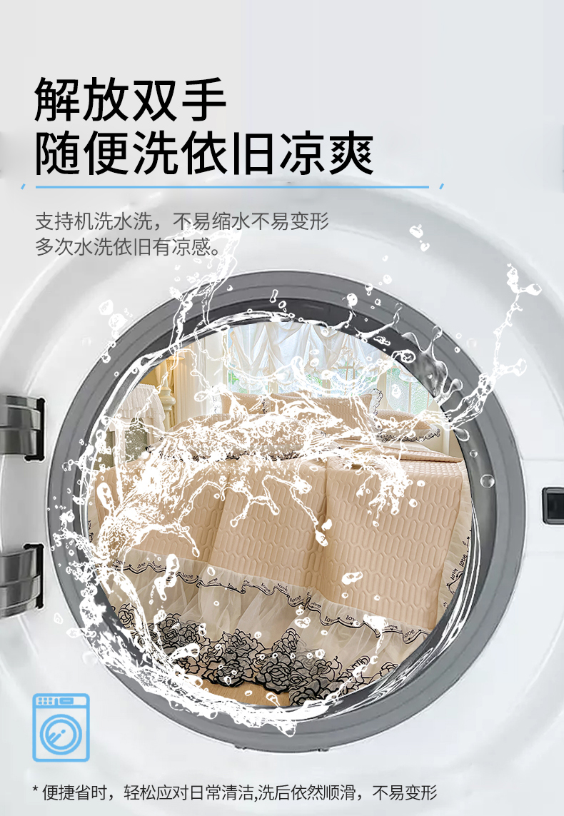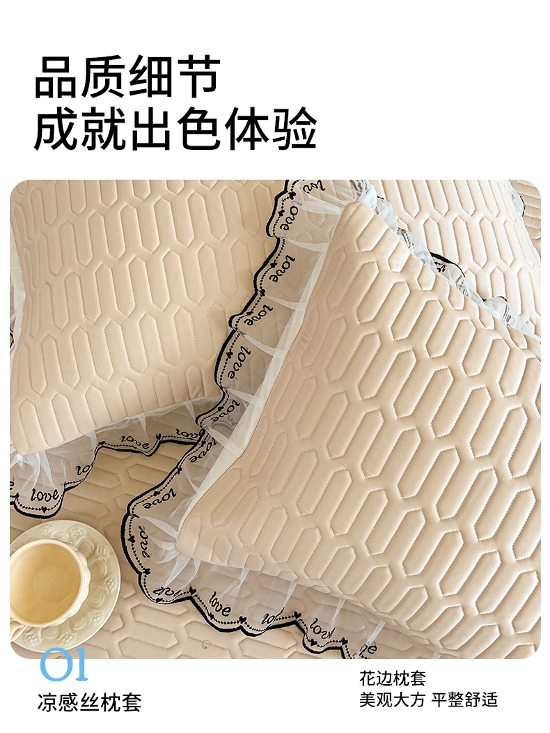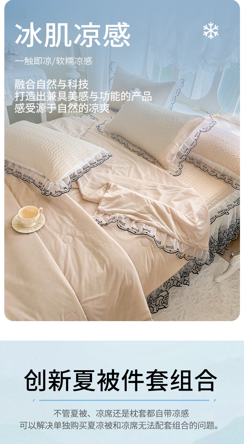 2025新款凉感丝乳胶凉席床裙款夏被四件套-爱恋 驼