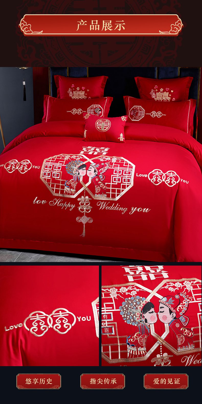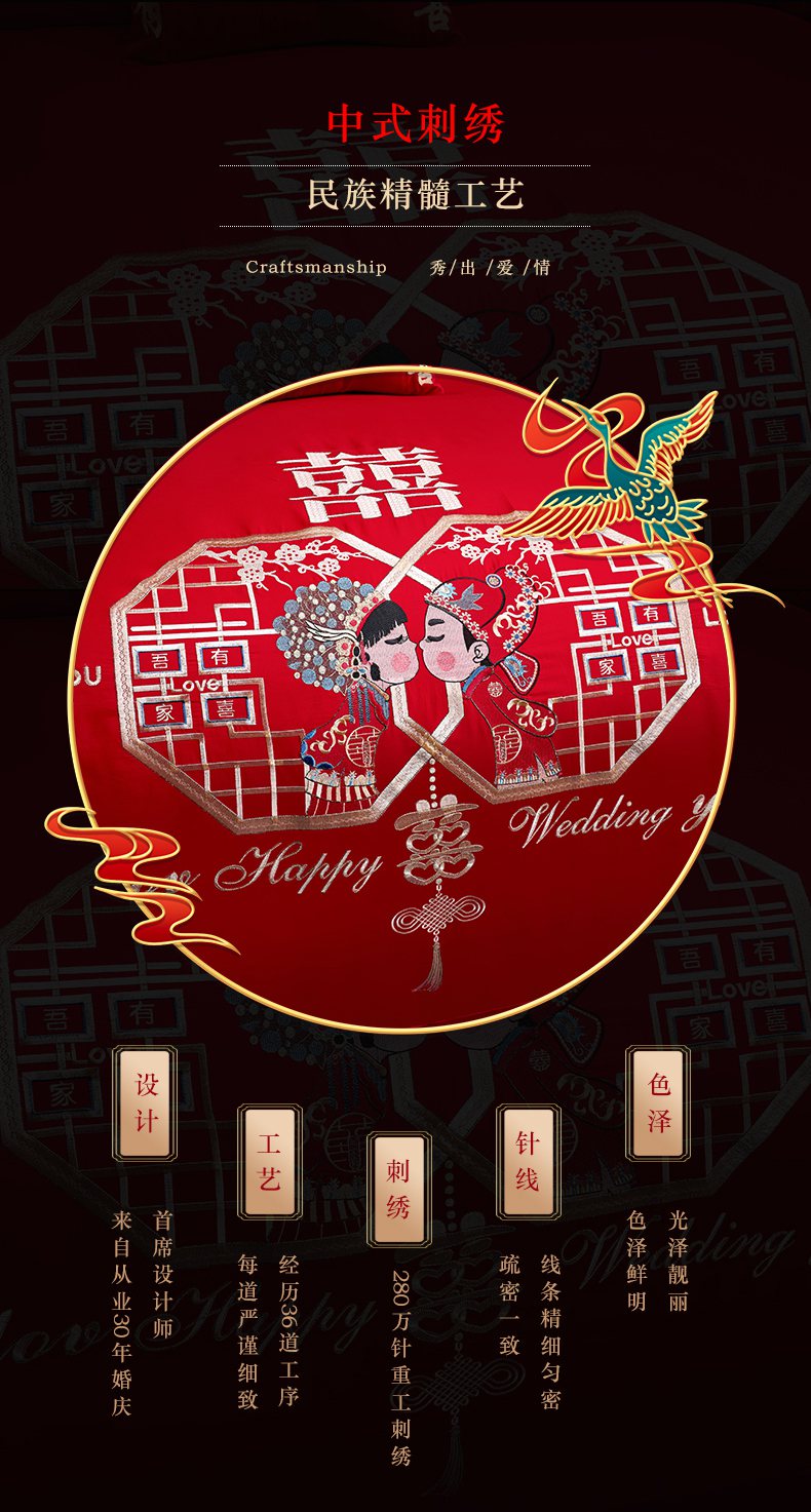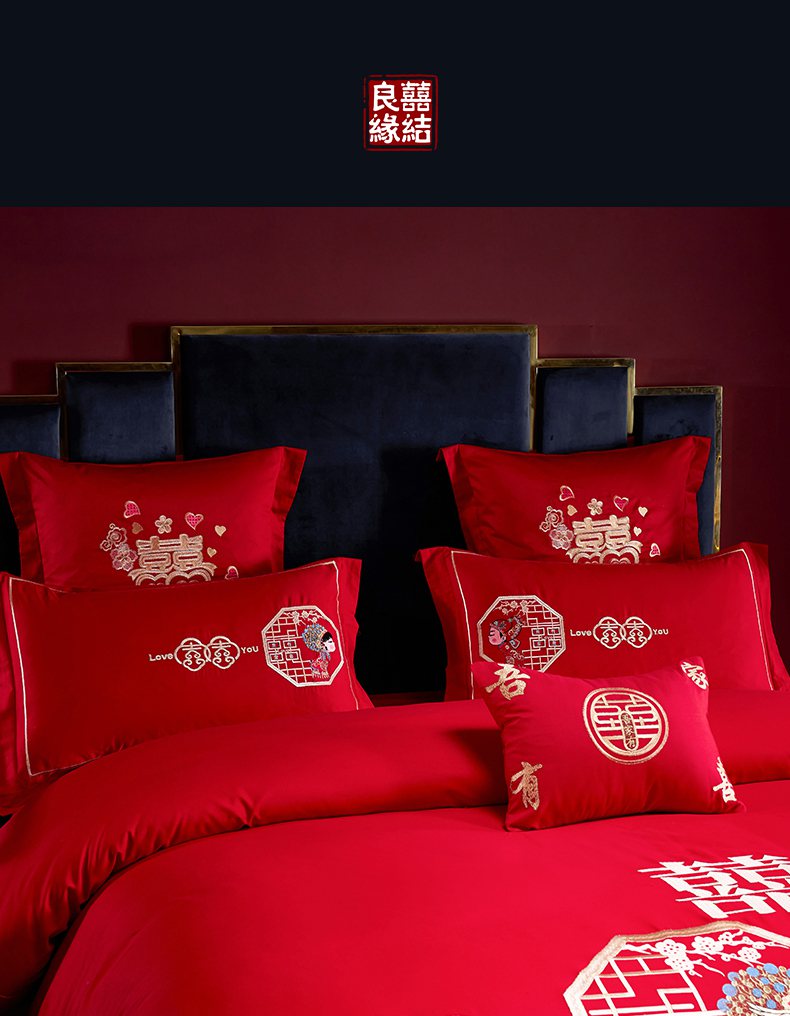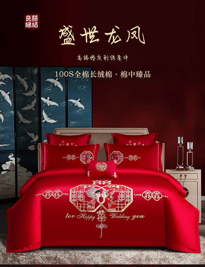 当前位置: 91家纺网 > 商品网购 > 床品套件 > 四件套 > 婚庆四件套 > 洽想家 2025新款全棉新中式刺绣婚庆四件套多件套(控价销售最低不低于288元) 相亲相爱(大红)