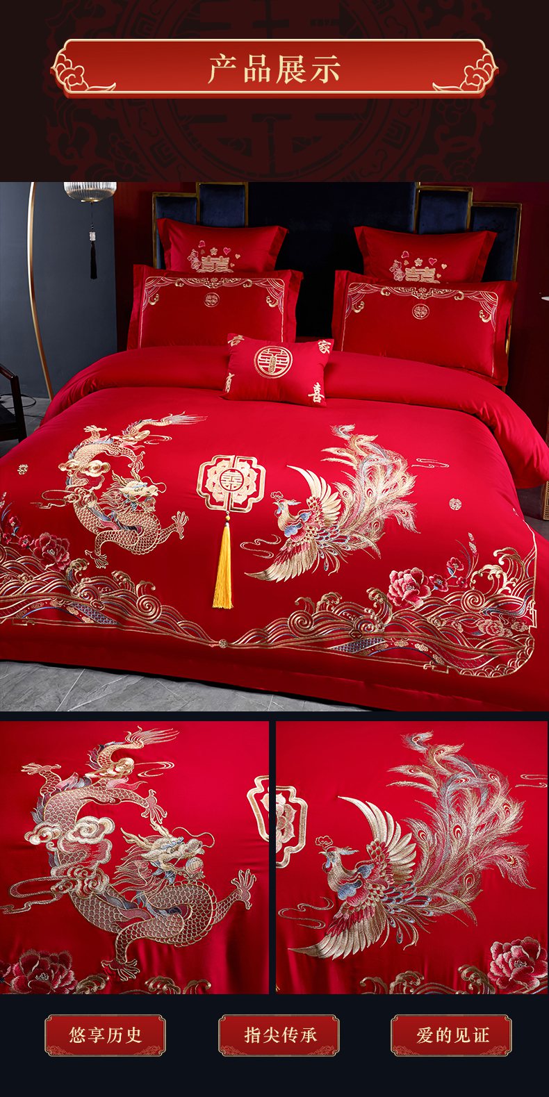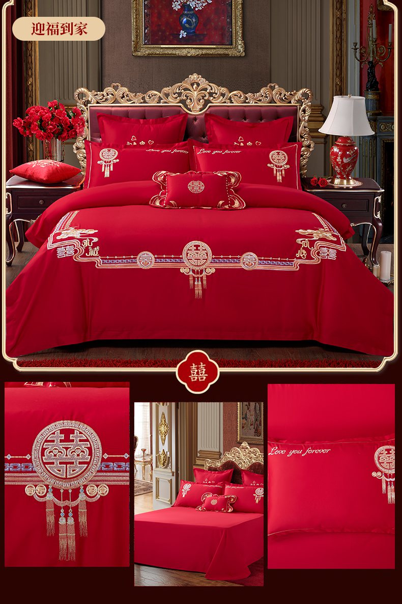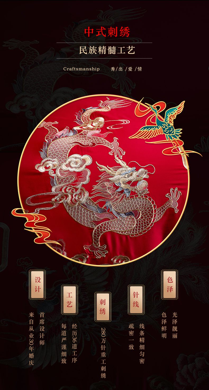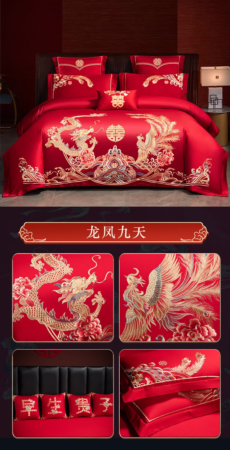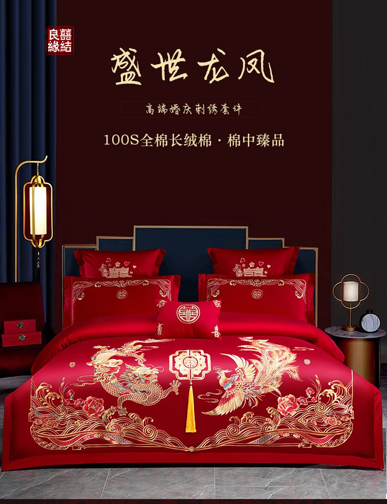 当前位置: 91家纺网 > 商品网购 > 床品套件 > 四件套 > 婚庆四件套 > 洽想家 2025新款全棉新中式刺绣婚庆四件套多件套(控价销售最低不低于288元) 盛世龙凤