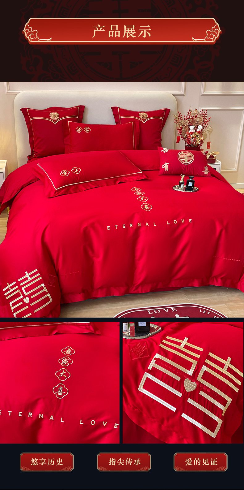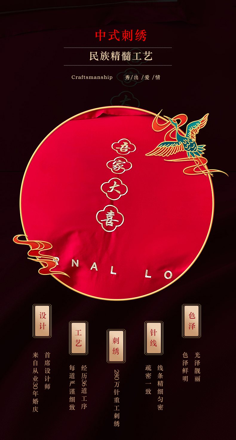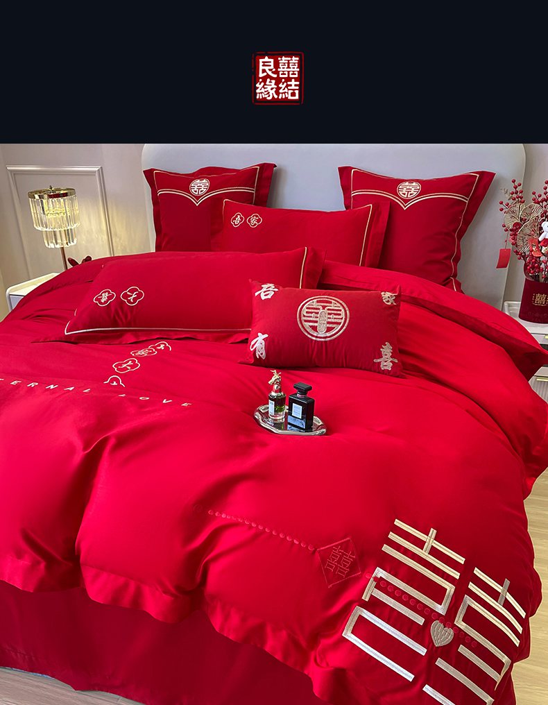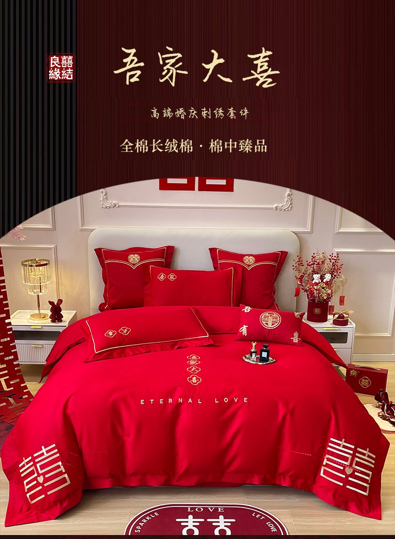 当前位置: 91家纺网 > 商品网购 > 床品套件 > 四件套 > 婚庆四件套 > 洽想家 2025新款全棉新中式刺绣婚庆四件套多件套(控价销售最低不低于288元) 吾家大喜
