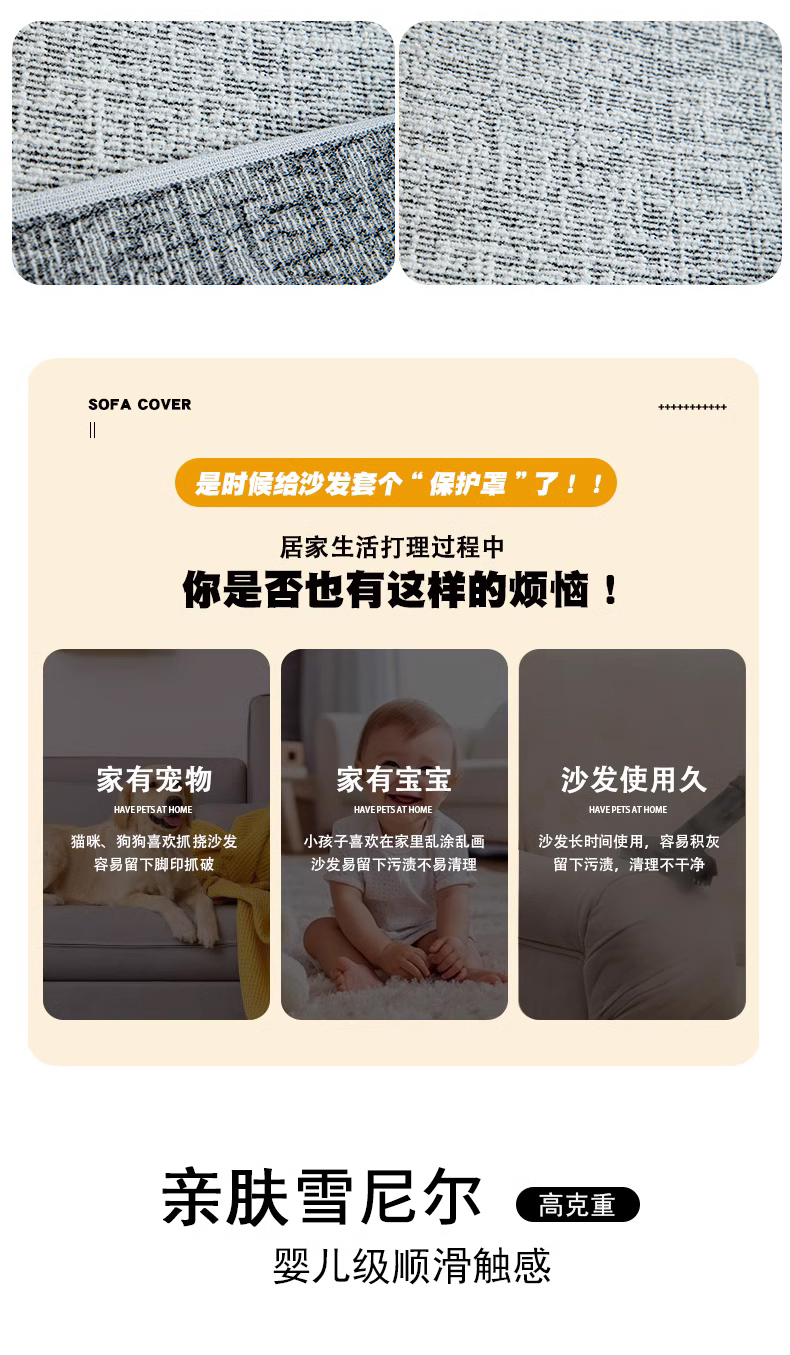 (总)沐沐家纺 2026新款雪花绒沙发笠,雪花绒-浅灰