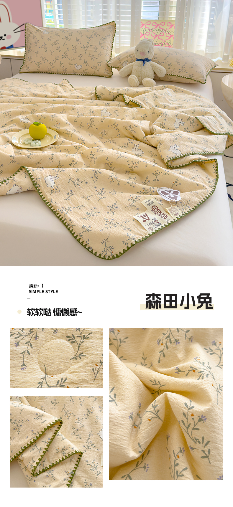 商品名称:星巴k家纺 2025新款贝壳绣三角针花边工艺款贝壳边夏被夏凉被空调被四件套【可提供买家秀】 森田小兔