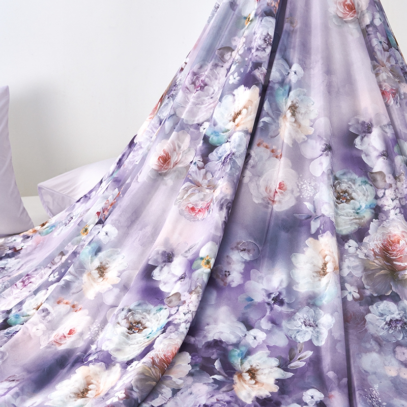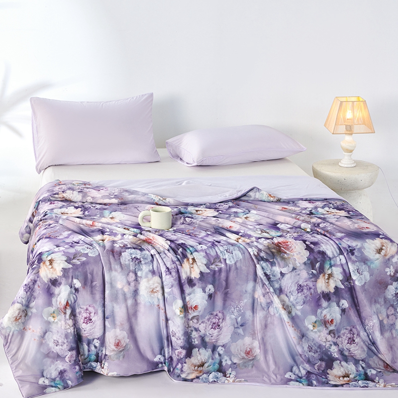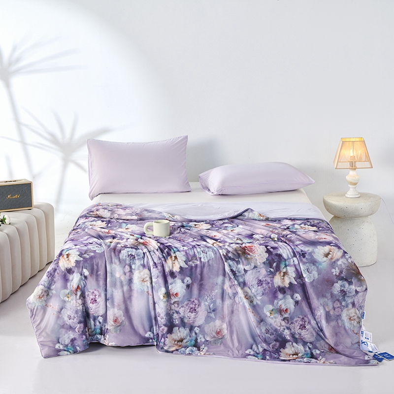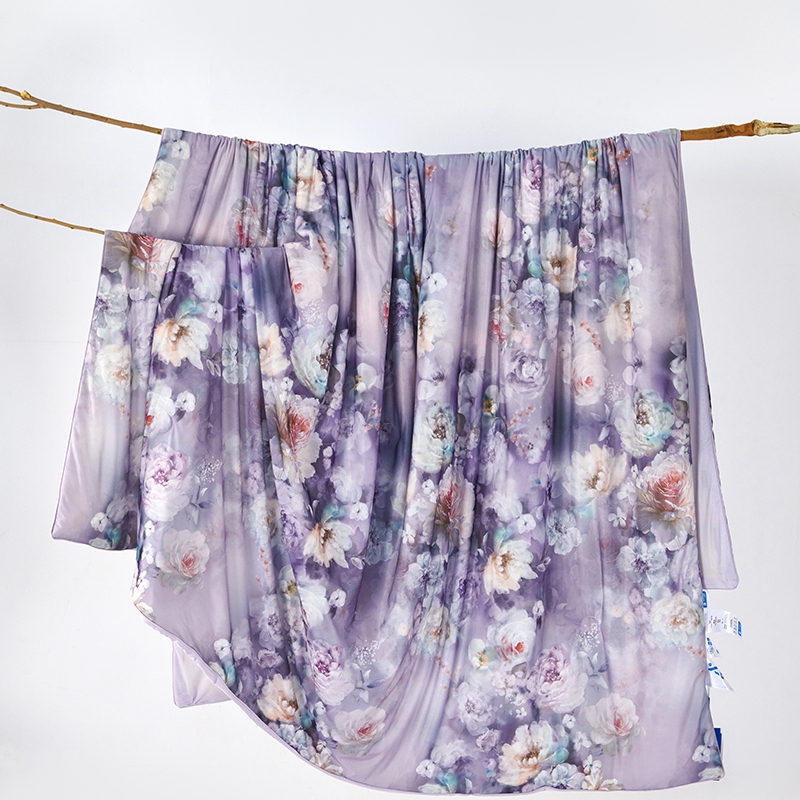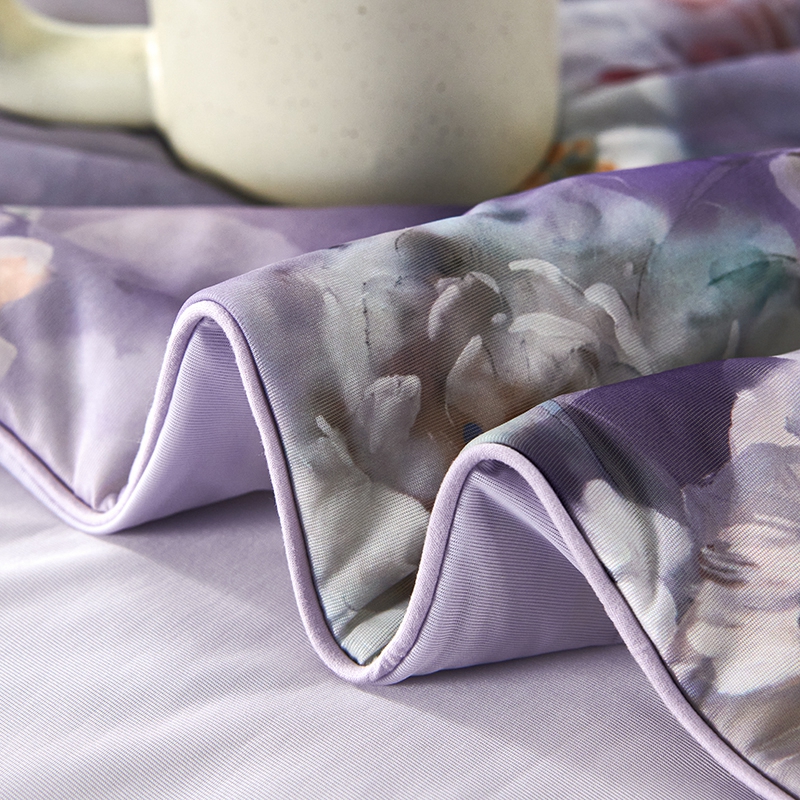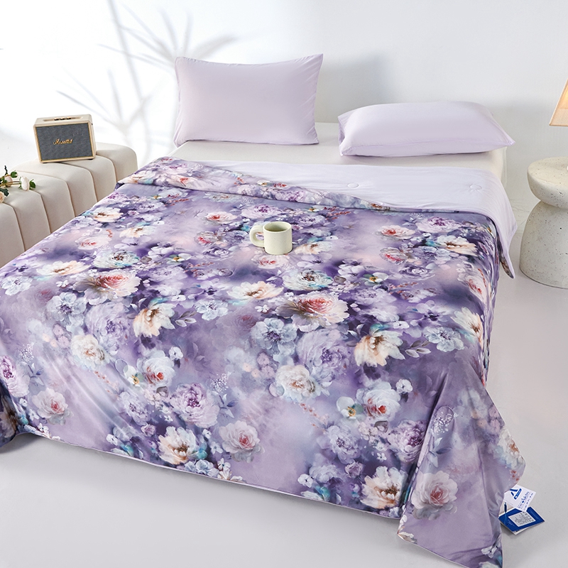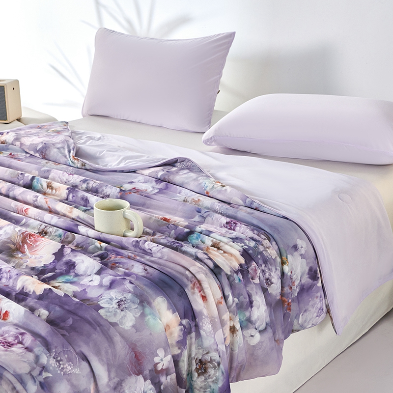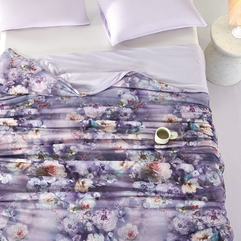 缔锦家纺 2025新款凉感丝印花夏被 叶韵-暮光紫