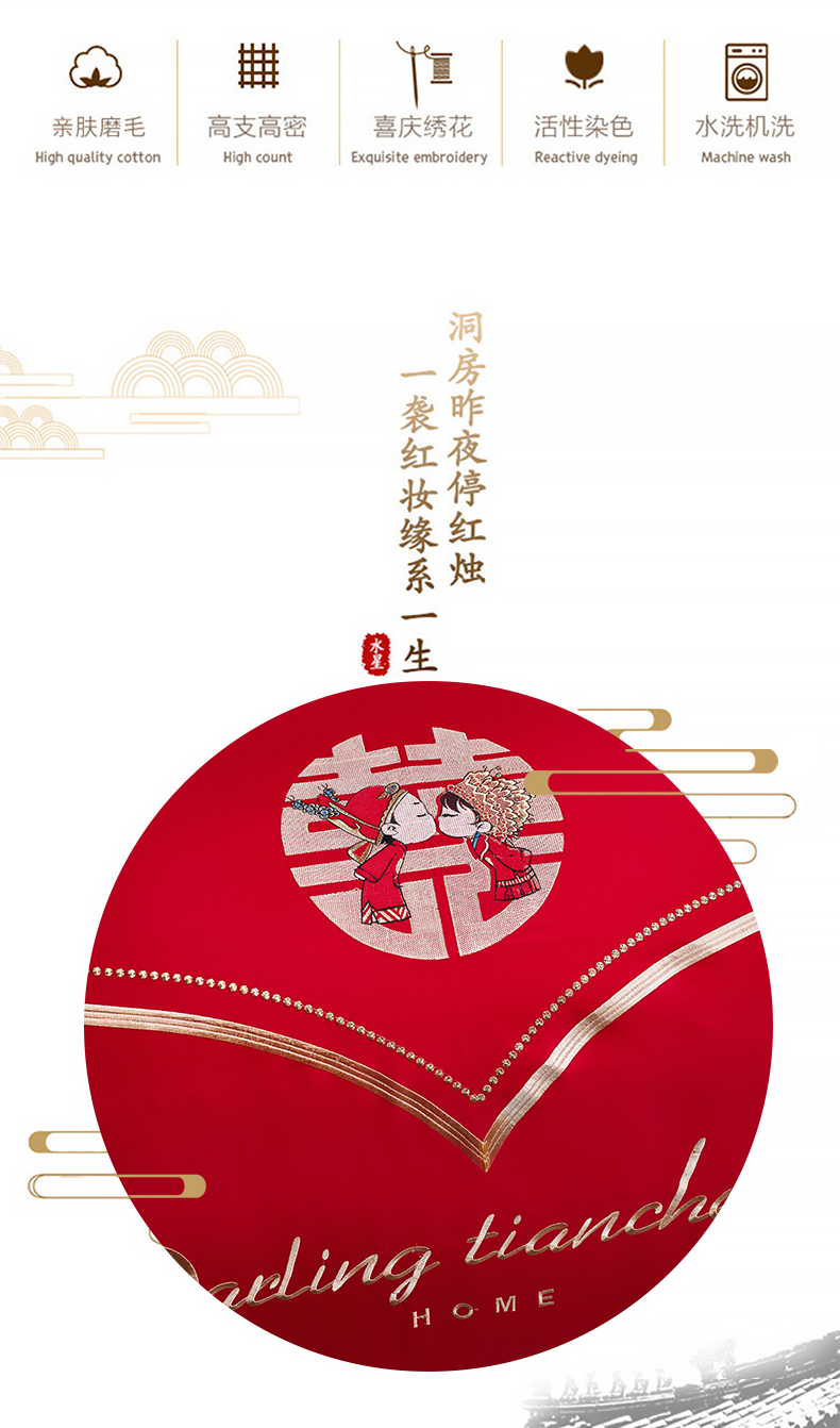 当前位置: 91家纺网 > 商品网购 > 床品套件 > 四件套 > 婚庆四件套 > 洽想家 2025新款磨毛婚庆四件套多件套 喜结连理