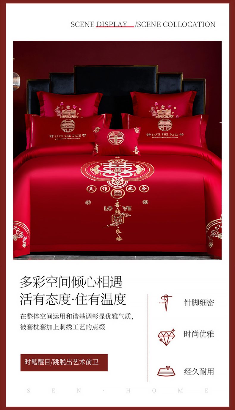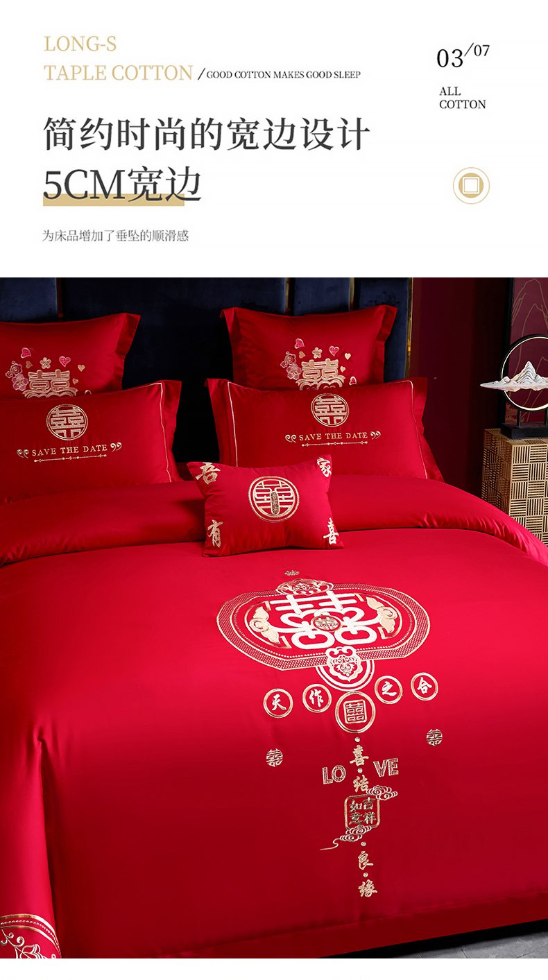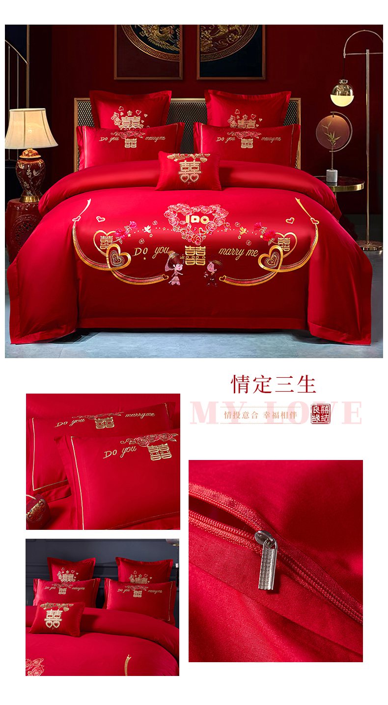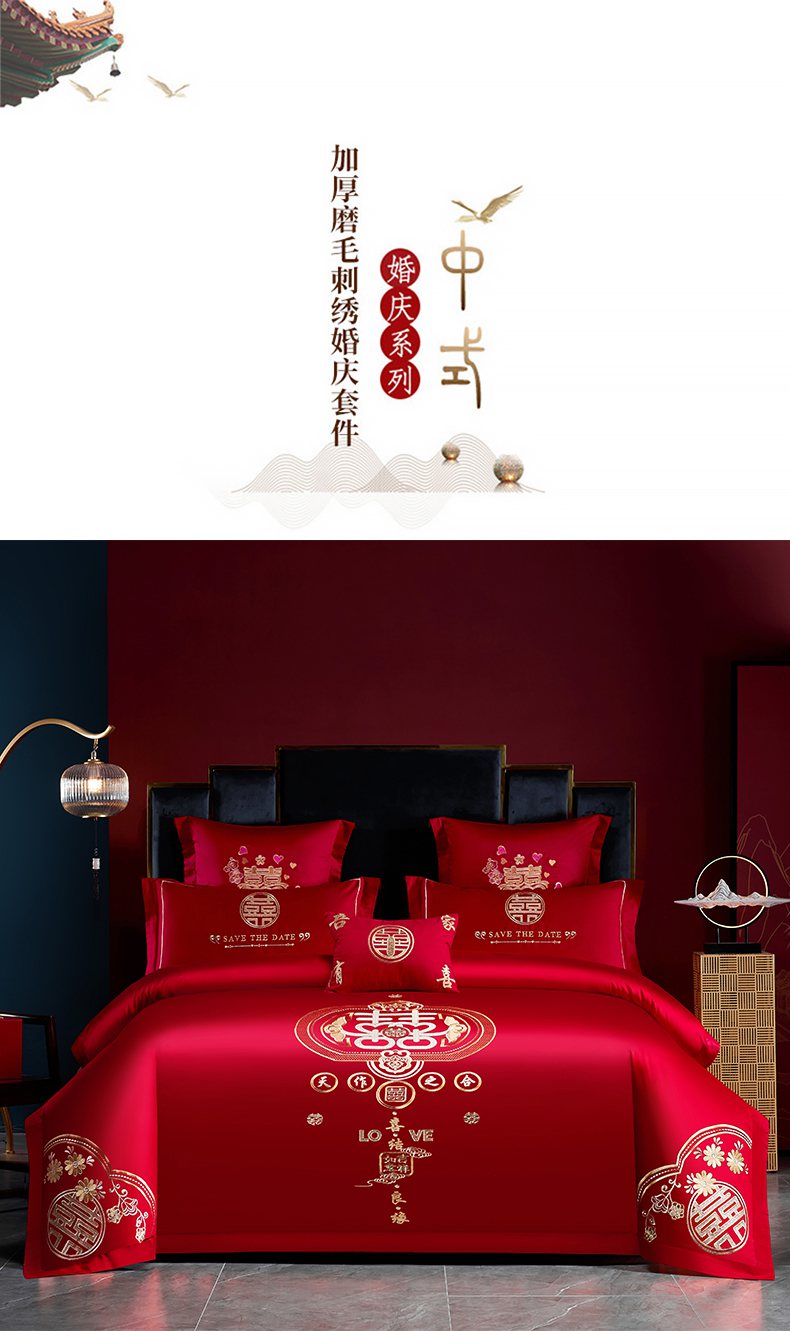 当前位置: 91家纺网 > 商品网购 > 床品套件 > 四件套 > 婚庆四件套 > 洽想家 2025新款亲肤棉磨毛刺绣婚庆四件套多件套 天作之合(磨毛款)