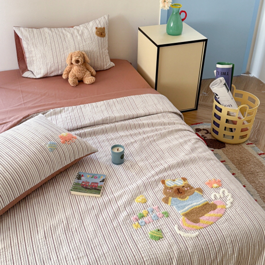 当前位置: 91家纺网 > 商品网购 > 床品套件 > 四件套 > 夏被四件套 > 柚子YOUTH 2025新款水洗棉提花毛巾绣夏被四件套 阿布布
