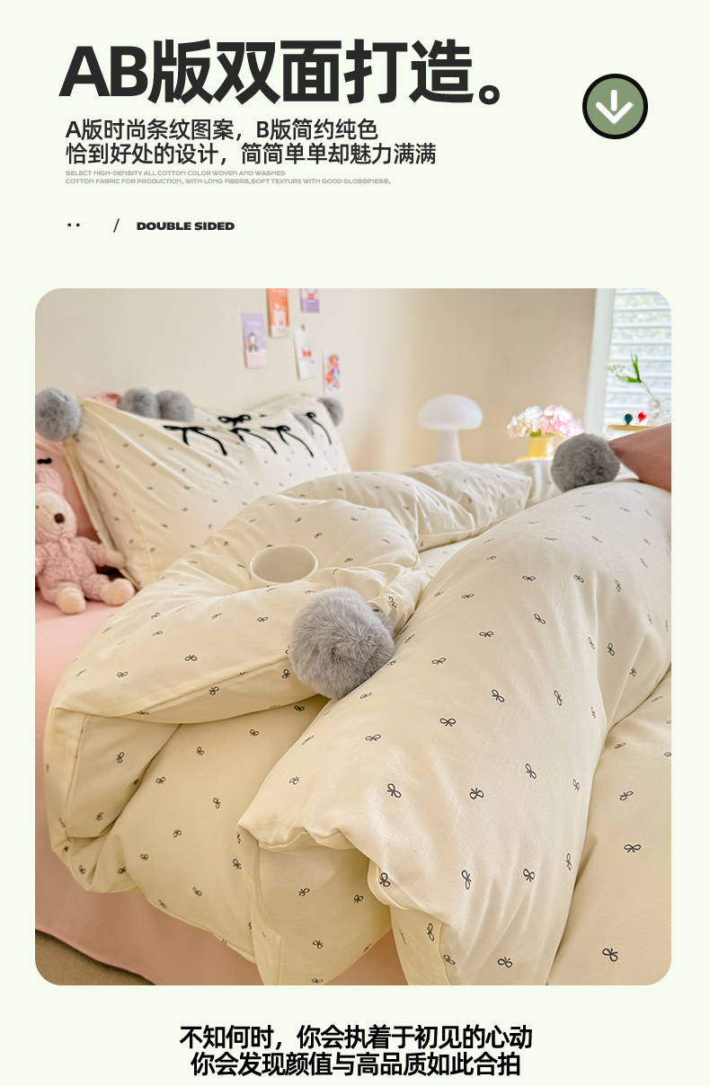 商品名称:多品家纺 2025新款超柔水洗棉奶油系毛球款单被套 梦幻甜心