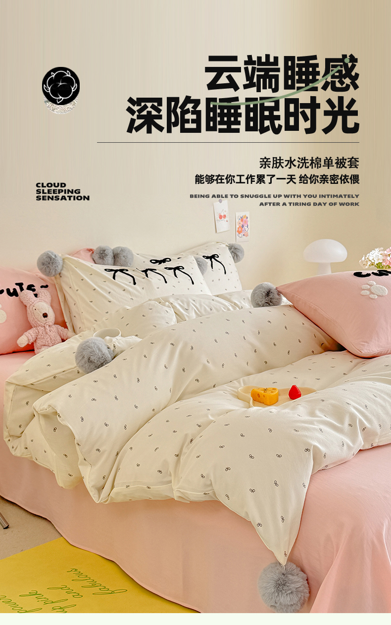 多品家纺 2025新款超柔水洗棉奶油系毛球款单被套 梦幻甜心