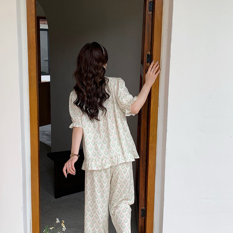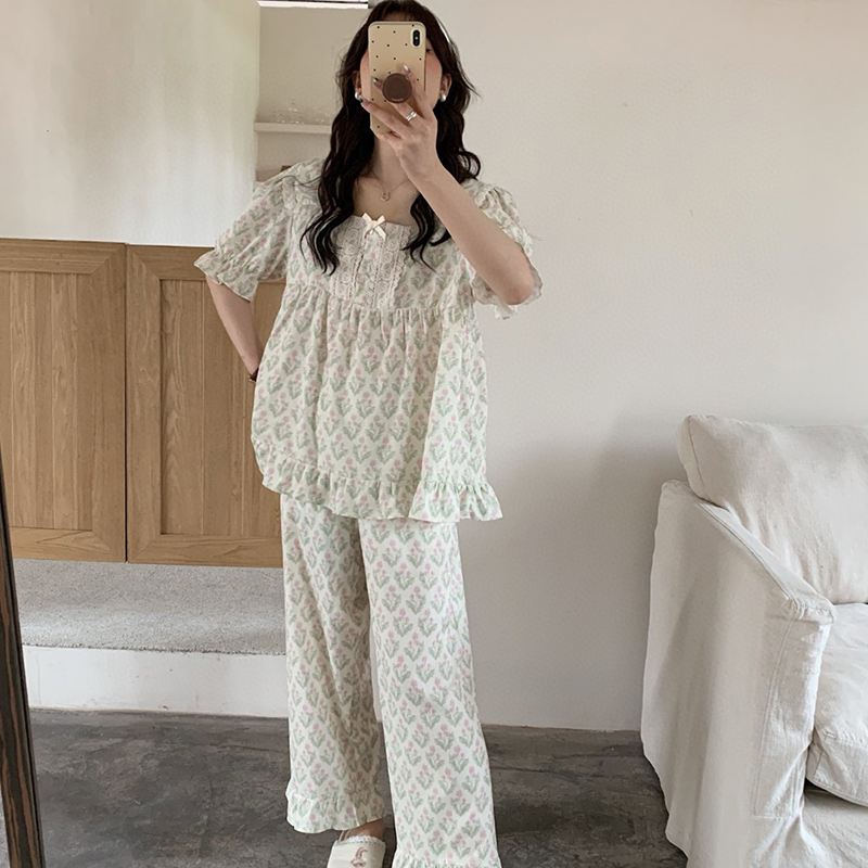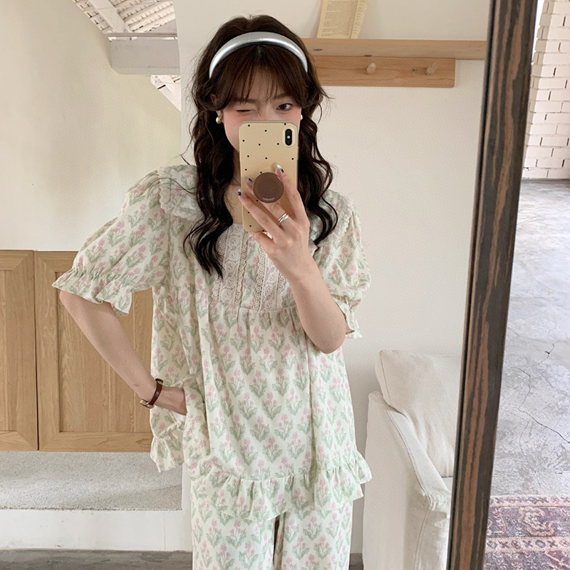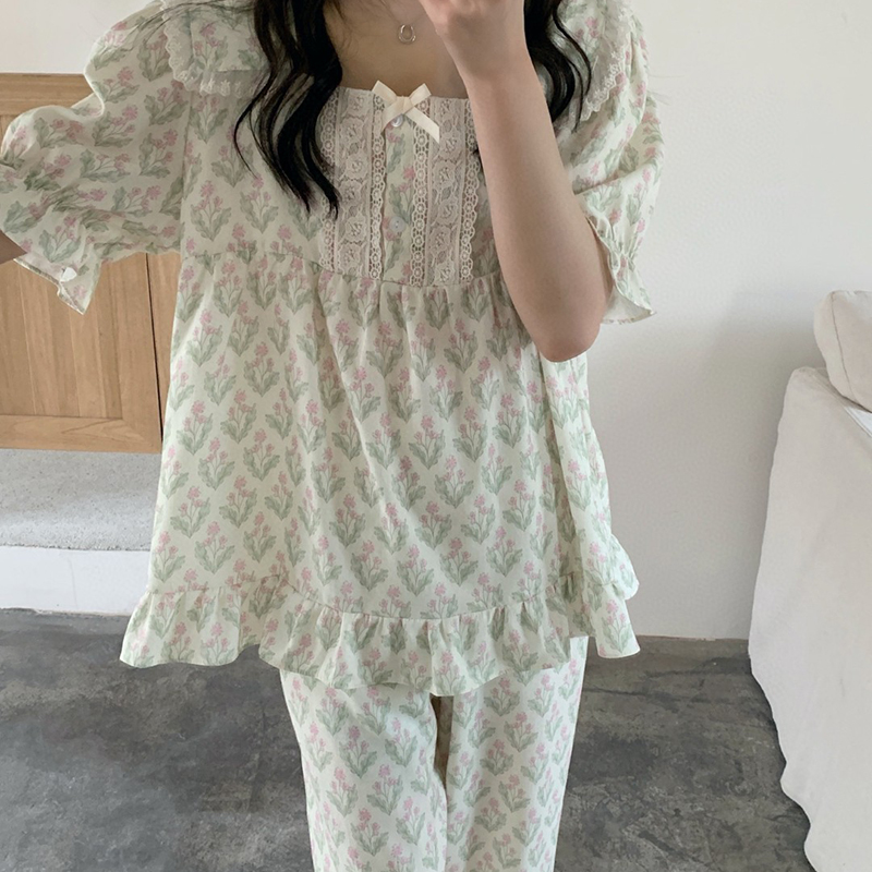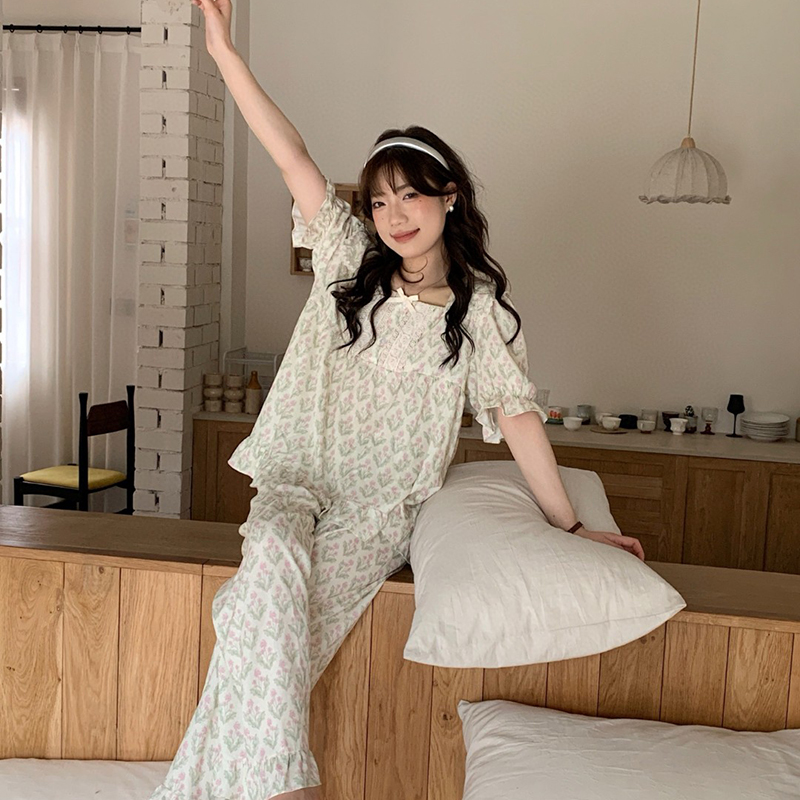 (总)妍景家居生活馆 2025新款25615-绿色碎花方领套装