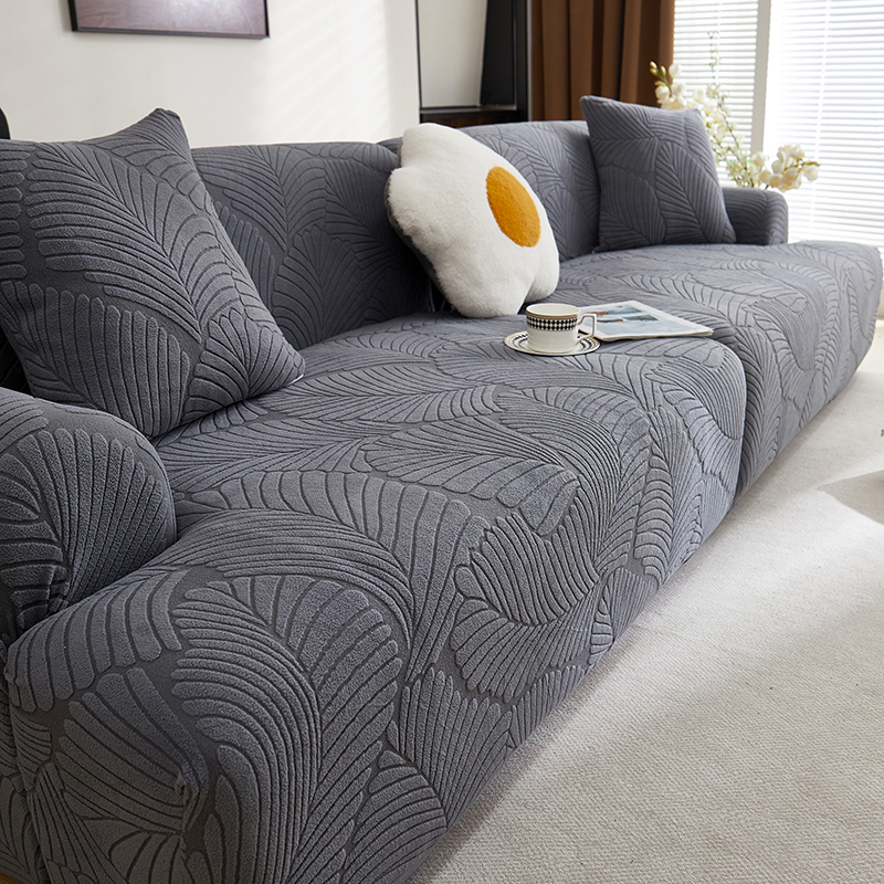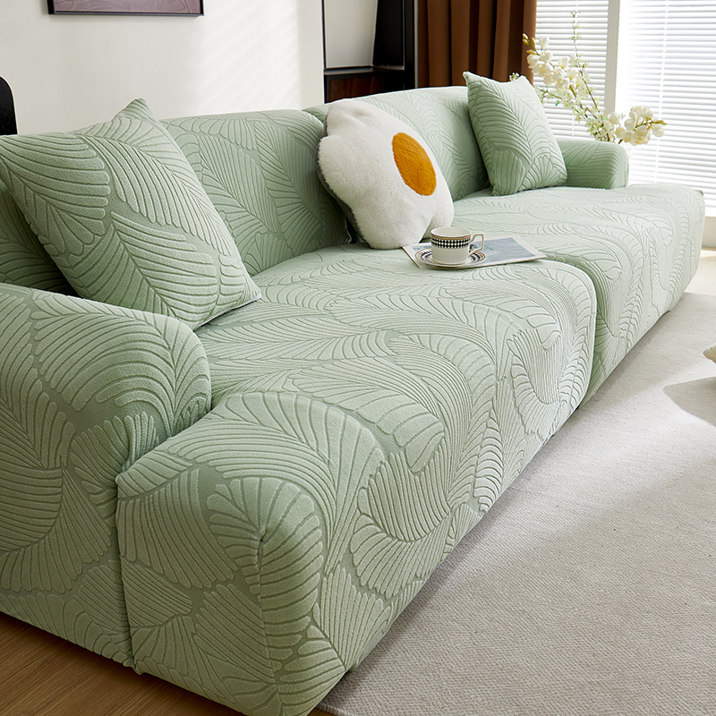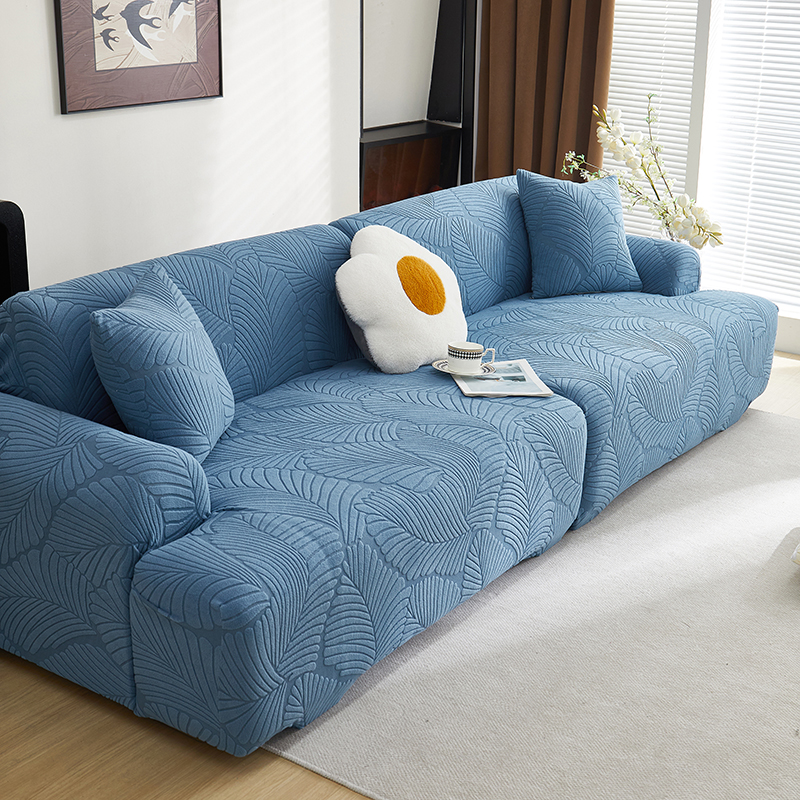 商品名称:丝绮鹿 2025新款雕花绒大叶子沙发套松紧款(直排) 水蓝