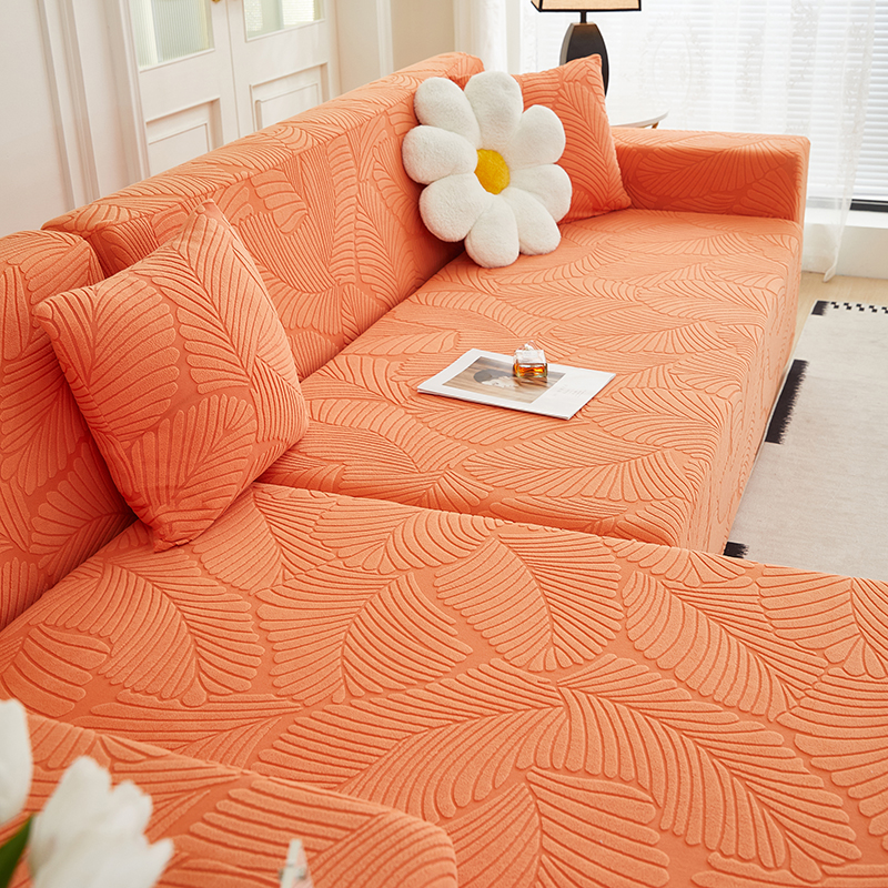 丝绮鹿 2025新款雕花绒大叶子沙发套松紧款(贵妃图新) 橙色