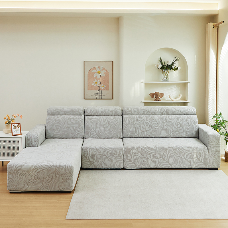 商品名称:丝绮鹿 2025新款雕花绒大叶子沙发套松紧款(贵妃图) 米白