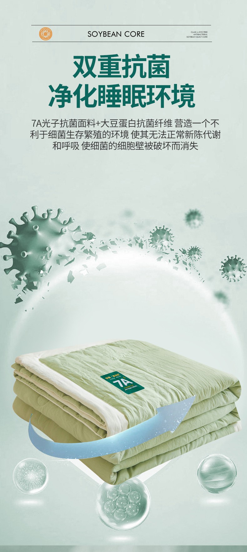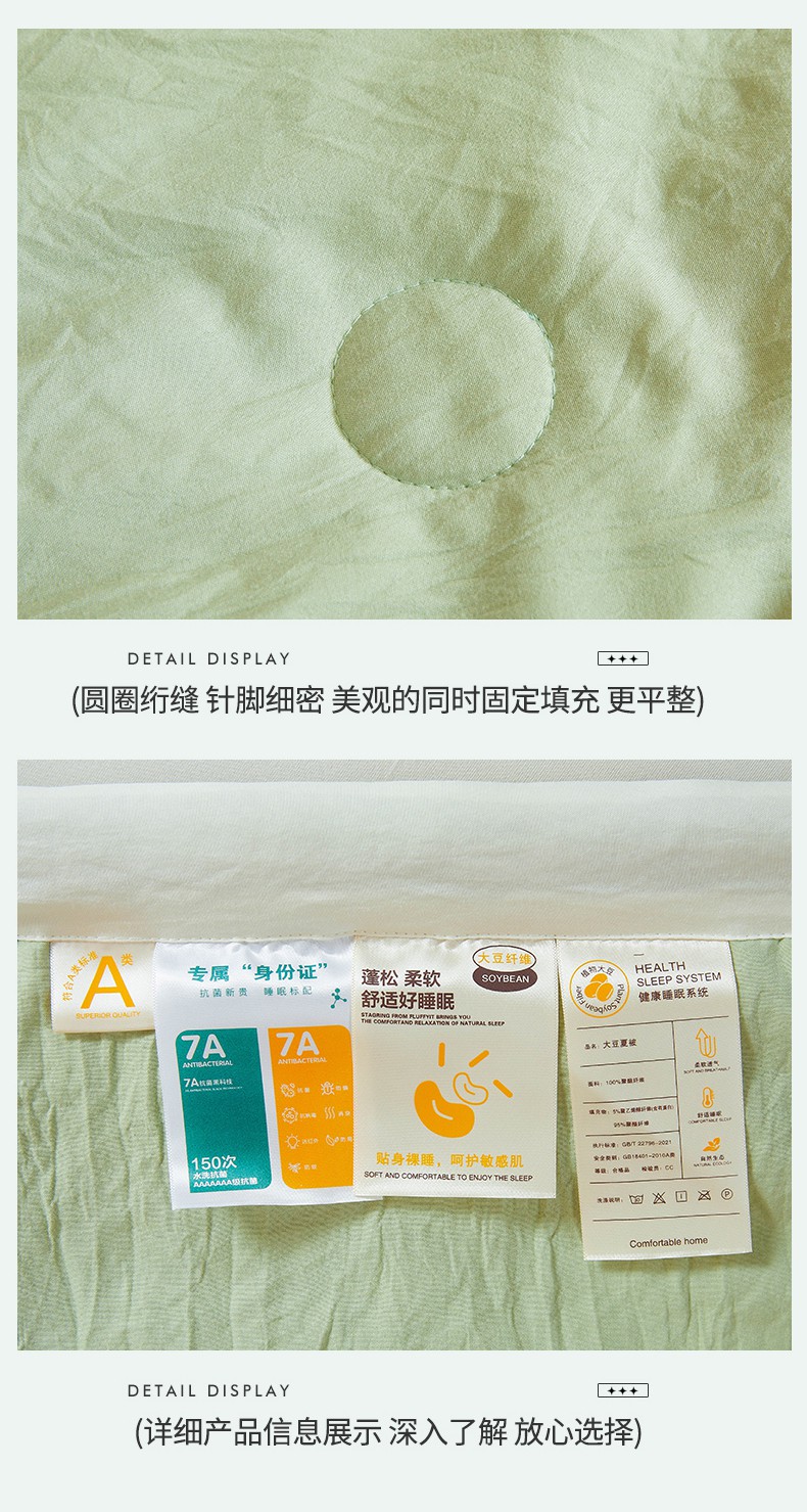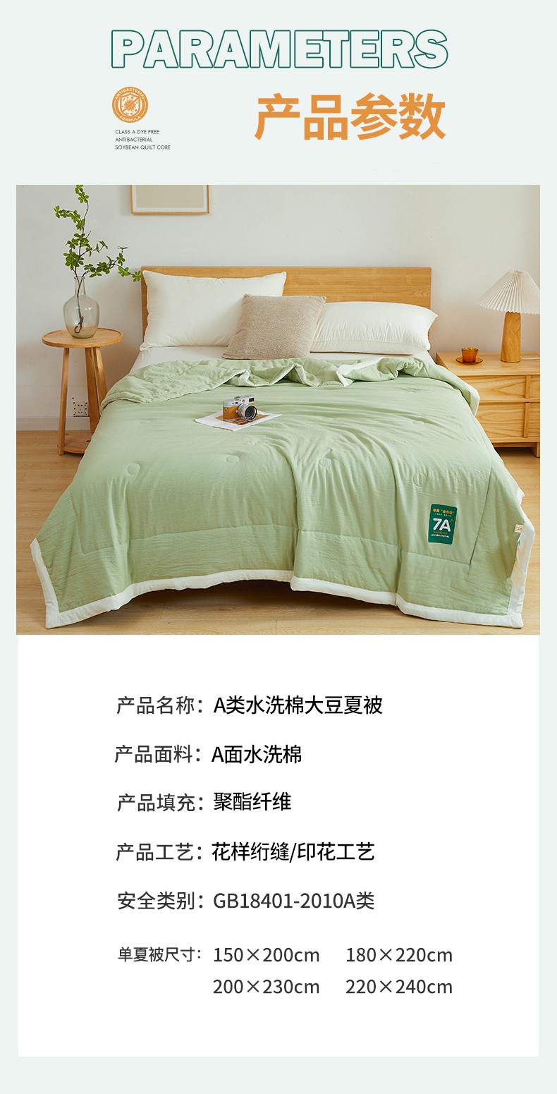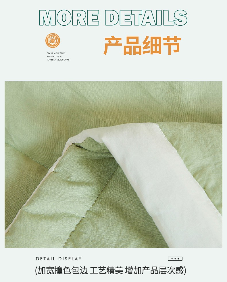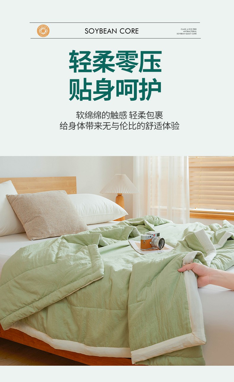 商品名称:咏绒家纺工厂店 2025新款7A抗菌原棉大豆夏被夏凉被空调被 抹茶绿