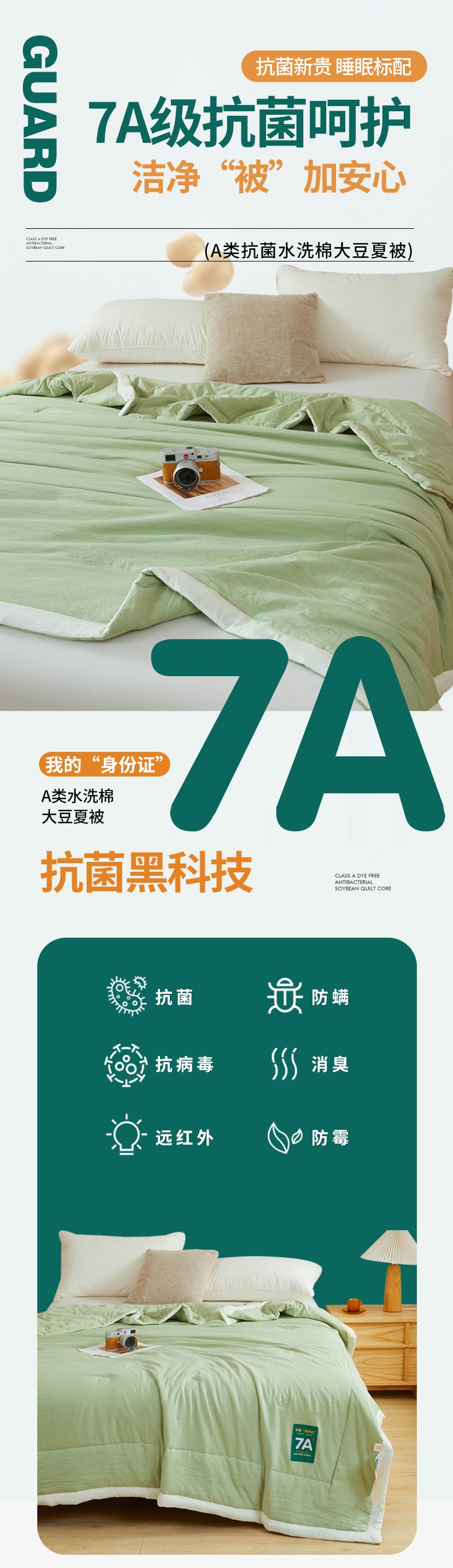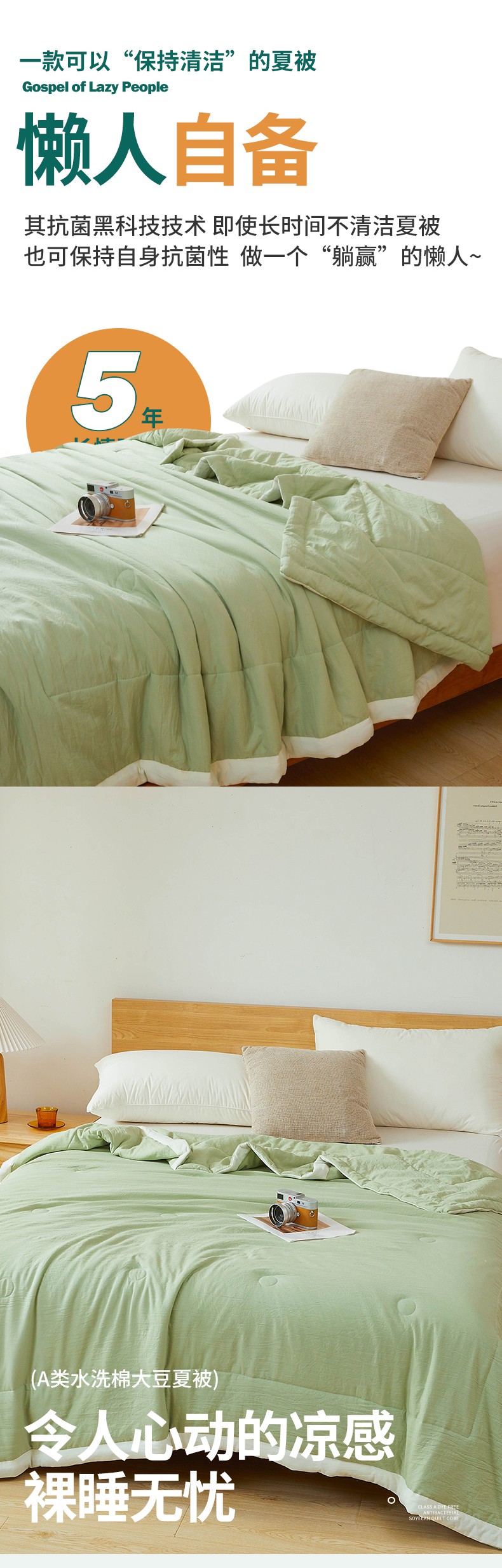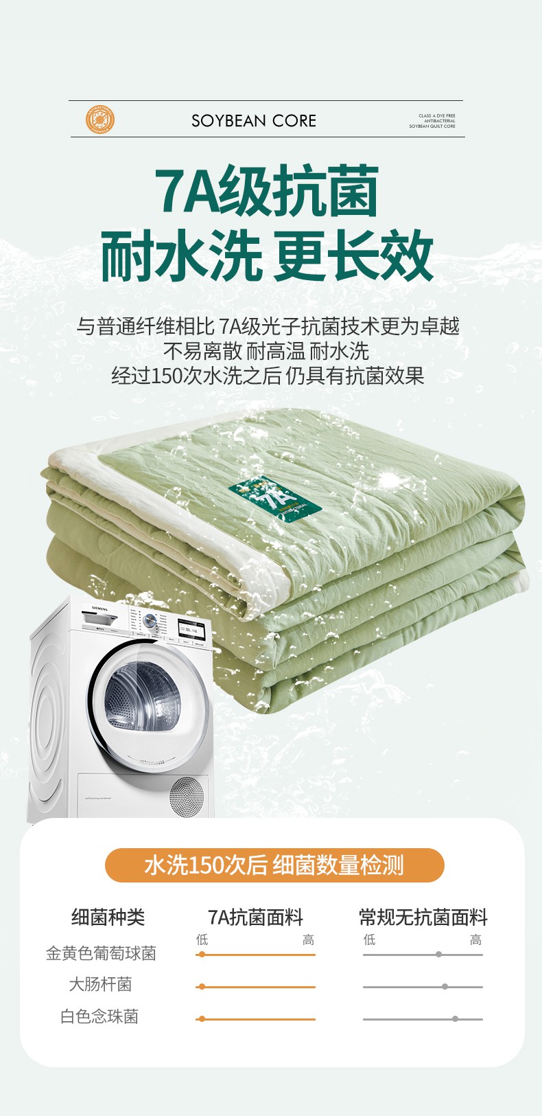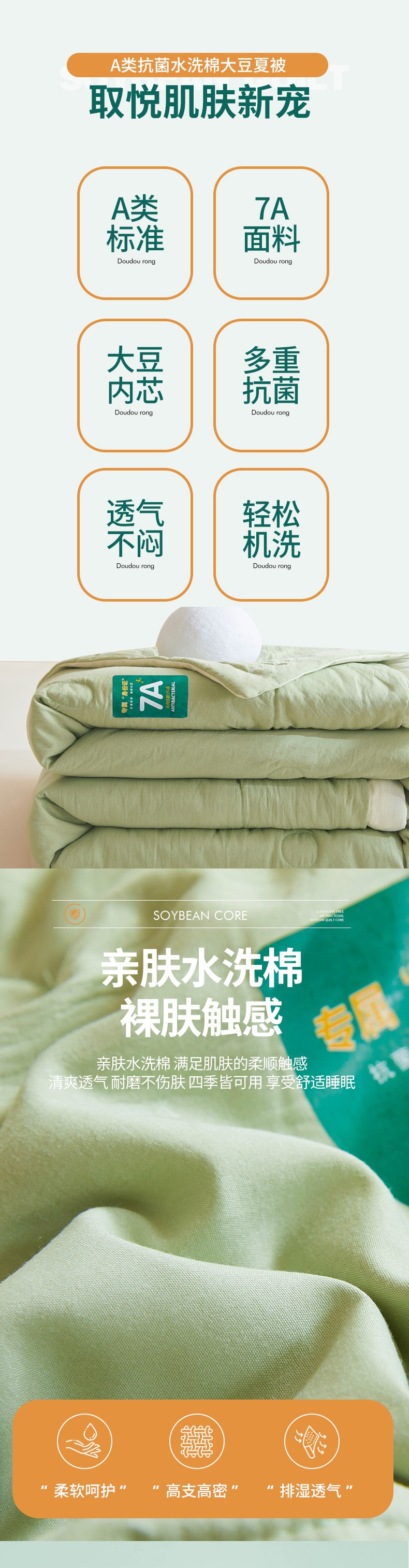 商品名称:咏绒家纺工厂店 2025新款7A抗菌原棉大豆夏被夏凉被空调被 抹茶绿