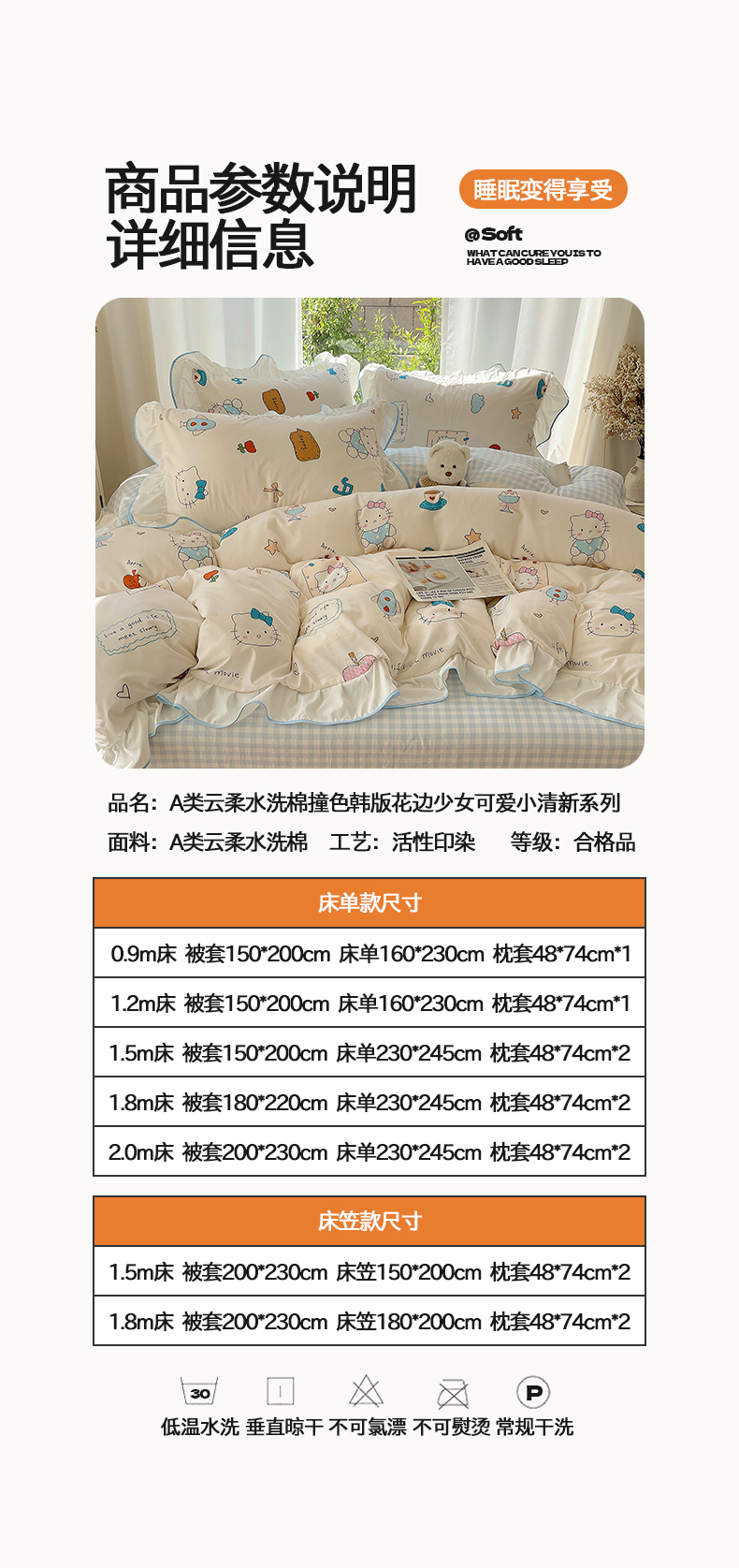 商品名称:(总)桃心家居 2025新款A类云柔水洗棉花边四件套