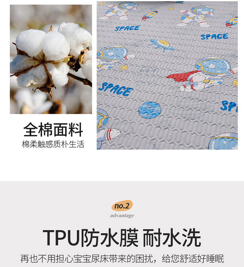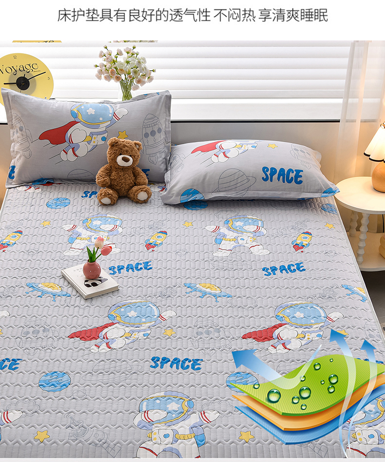 床笠人家 2025新款全棉夹棉防水床垫 遨游太空,遨游太空