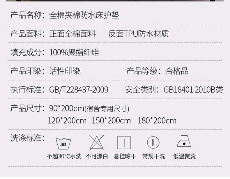 床笠人家 2025新款全棉夹棉防水床垫 德芙,德芙