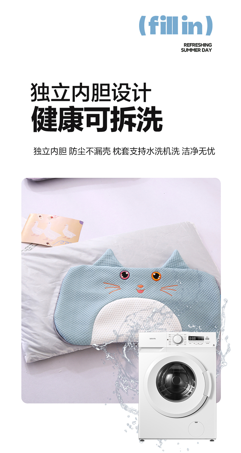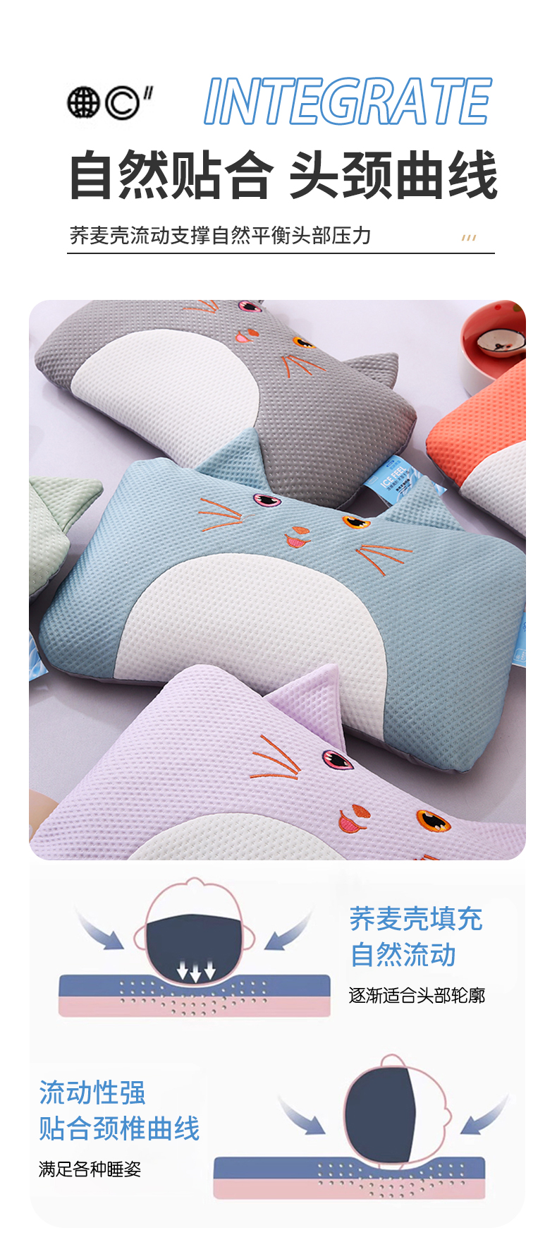 当前位置: 91家纺网 > 商品网购 > 枕头/枕芯/保健枕/颈椎枕 > 普通枕芯 > 蔻眠 小猫咪-夏季凉感丝卡通荞麦枕头儿童学生防出汗枕芯 主图 24x45cm