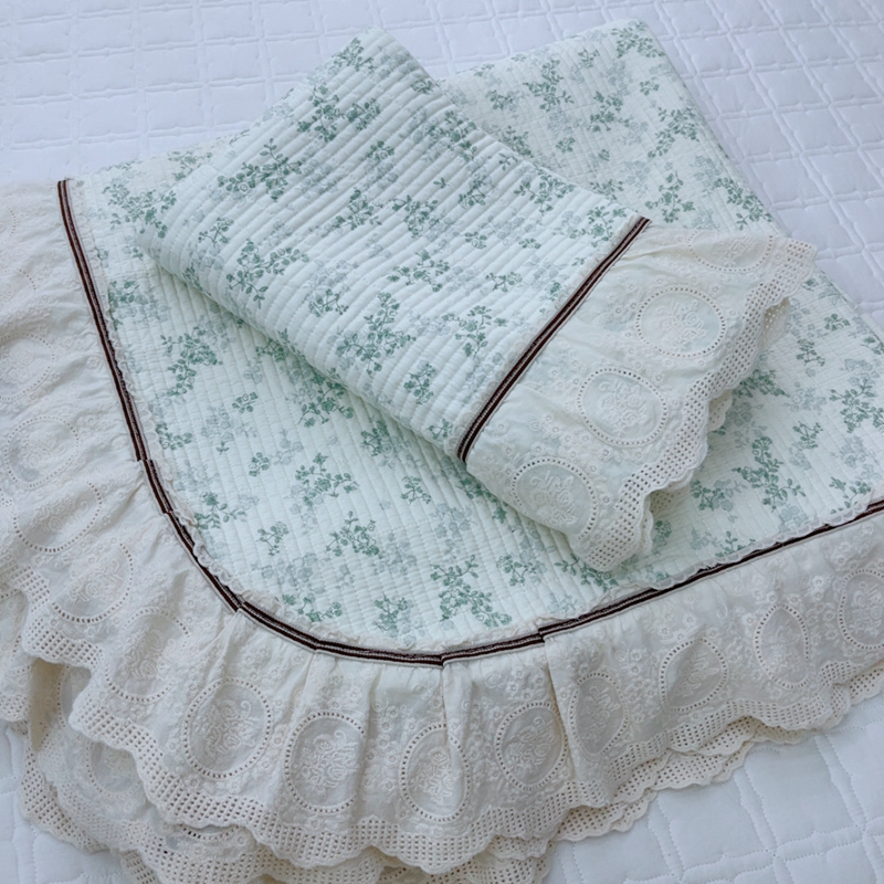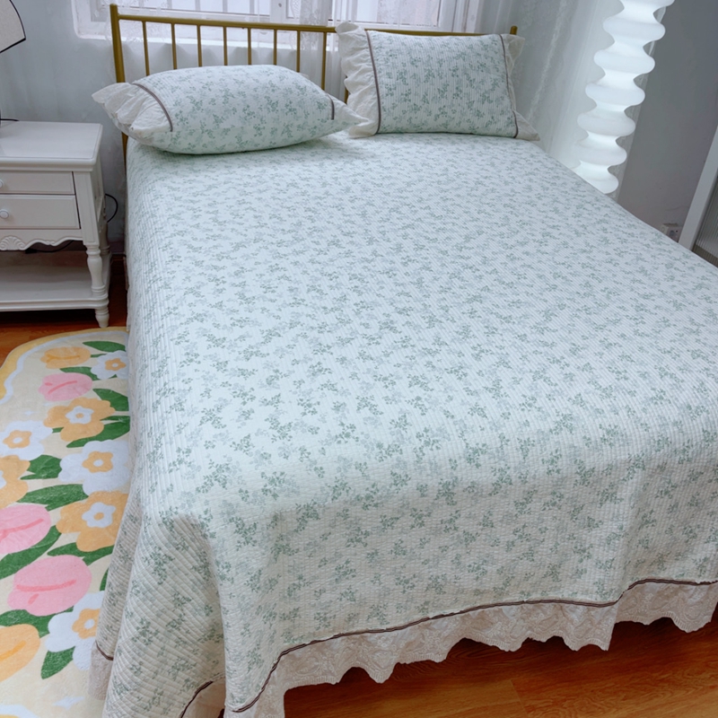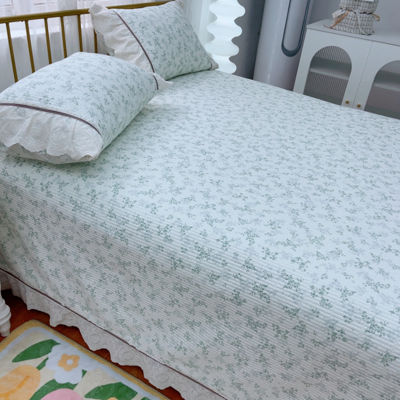 商品名称:暖居 2025新款法式13370高密小碎花40支全棉纯棉床盖四件套 春风里绿