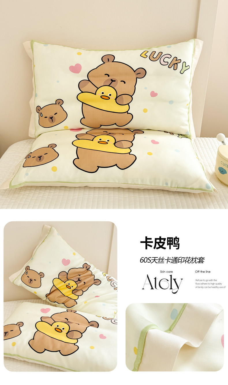 商品名称:慕尚2025儿童大版天丝枕套 卡皮鸭