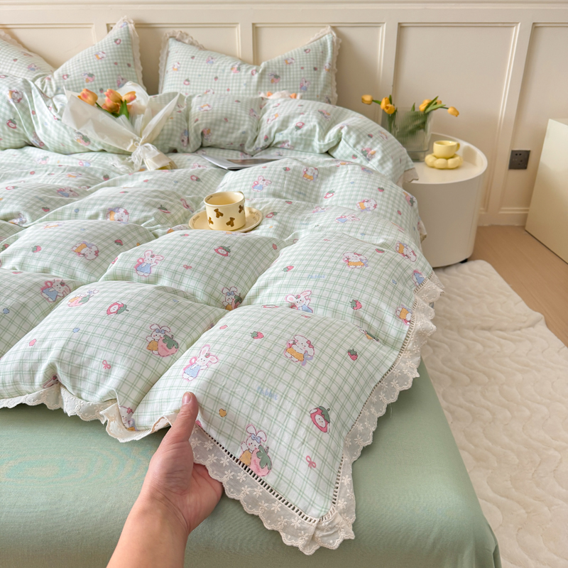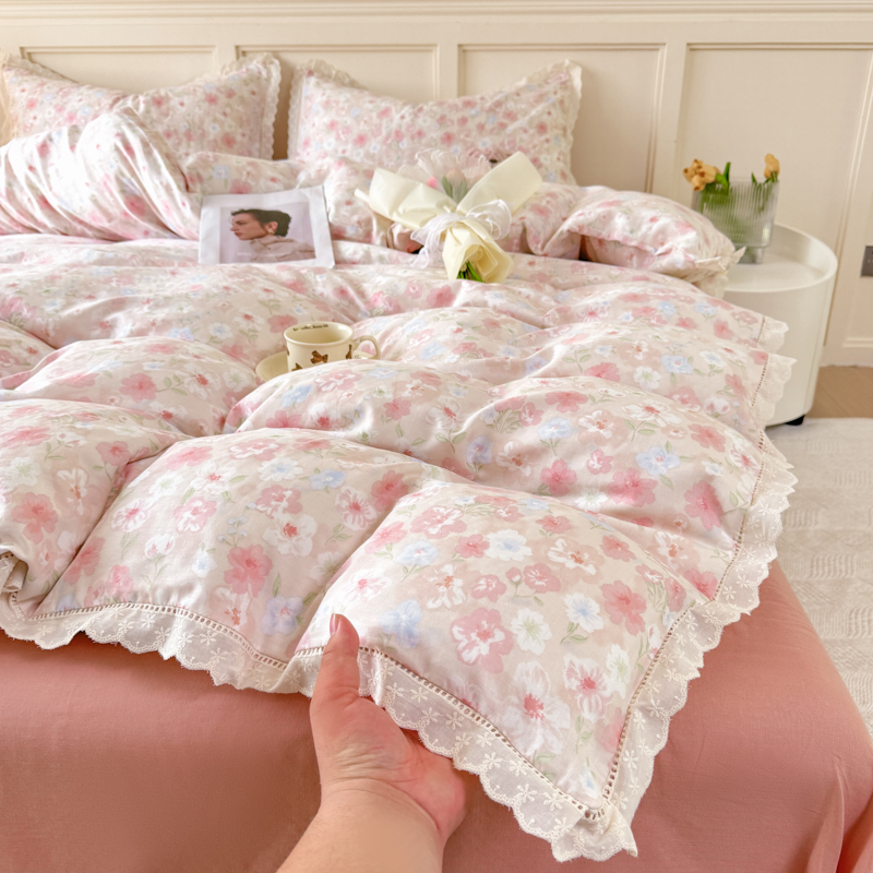 (总)【苏东来】2025韩版蕾丝花边纯棉全棉双层纱四件套全棉纯棉小碎花印花四件套法式赫本公主风韩系皱皱纱花边四件套针织棉四件套件