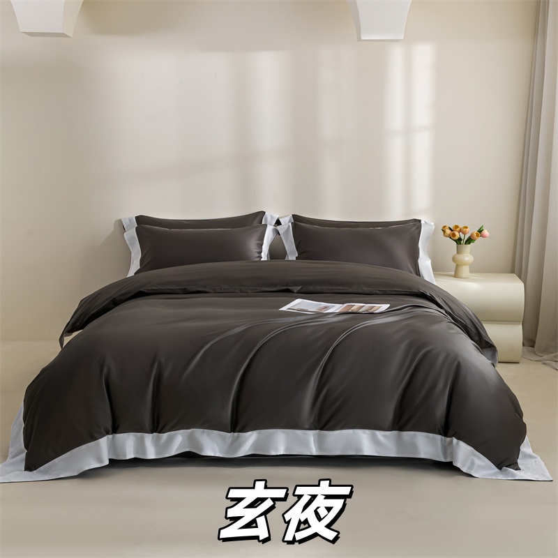 商品名称:贝兰仙奴2025新款50双股长绒棉拼边四件套 玄夜