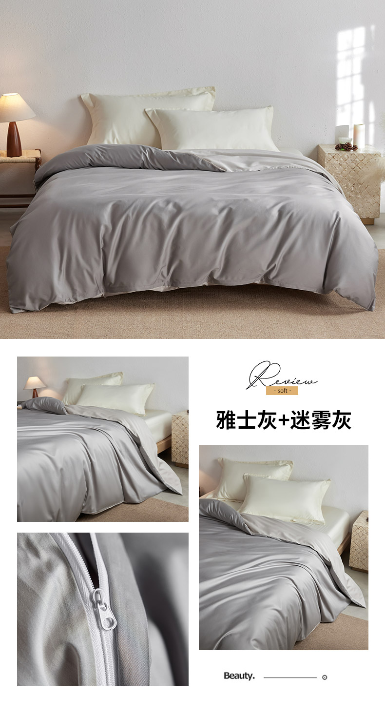 • 91家纺网 家纺一手货源 找家纺 轩和家居 2025新款50S贡缎长绒棉纯棉单被套单品被套被套单件 梦境灰+雅士灰