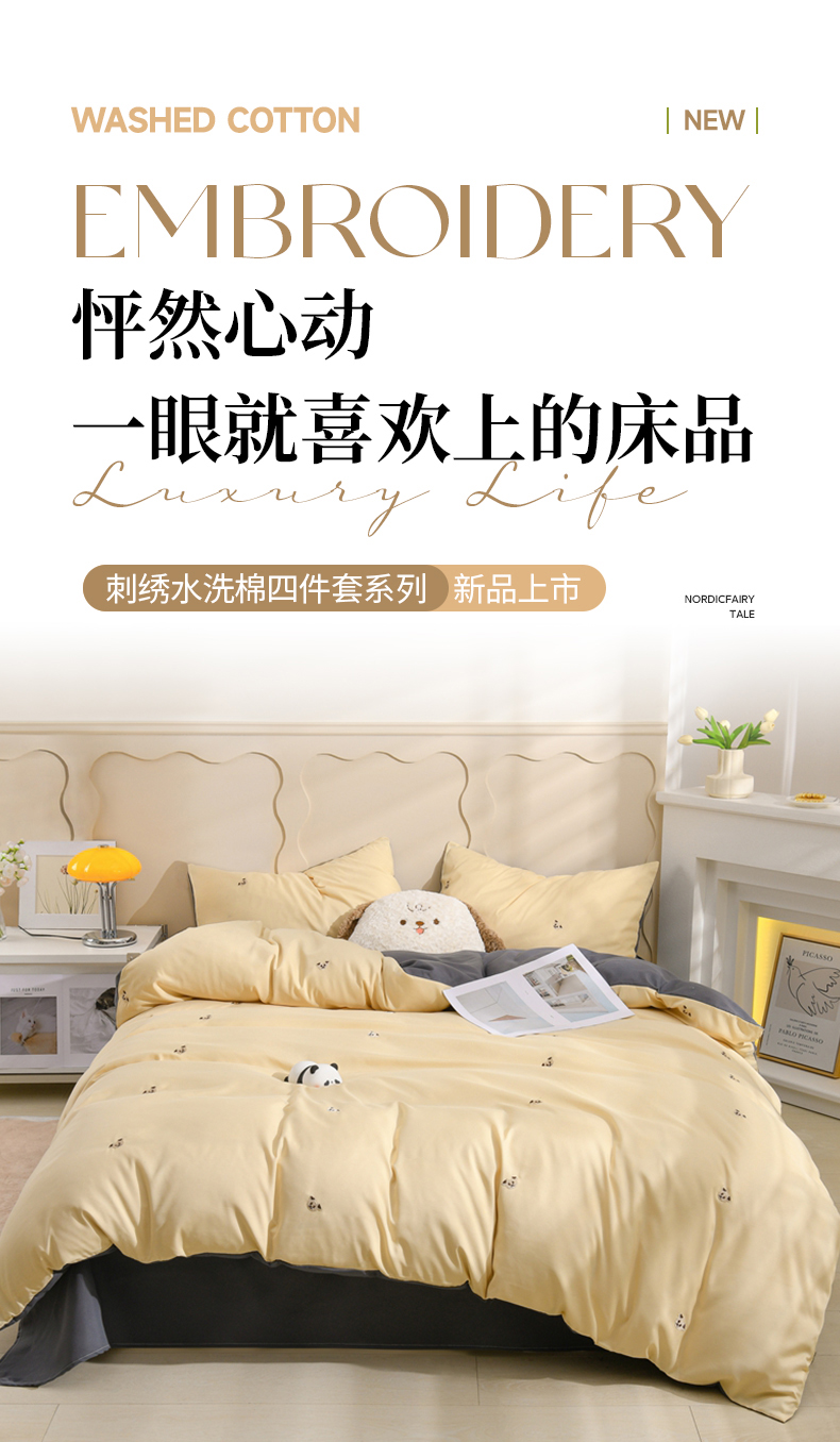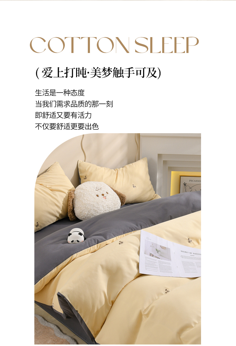 当前位置: 91家纺网 > 商品网购 > 床品套件 > 四件套 > 水洗棉四件套 > 推推家纺 2025新款刺绣水洗棉小清新四件套 熊头-米驼+深灰