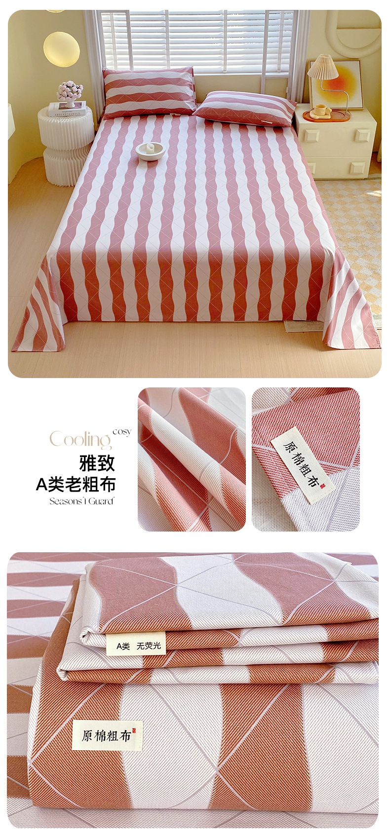 • 91家纺网 家纺一手货源 找家纺 金鑫汇家纺 2025年新款百分百全棉老粗布全棉加厚加密高克重单品床单(花型更好卖,面料更厚实,自带凉感) 老粗布奶油粉