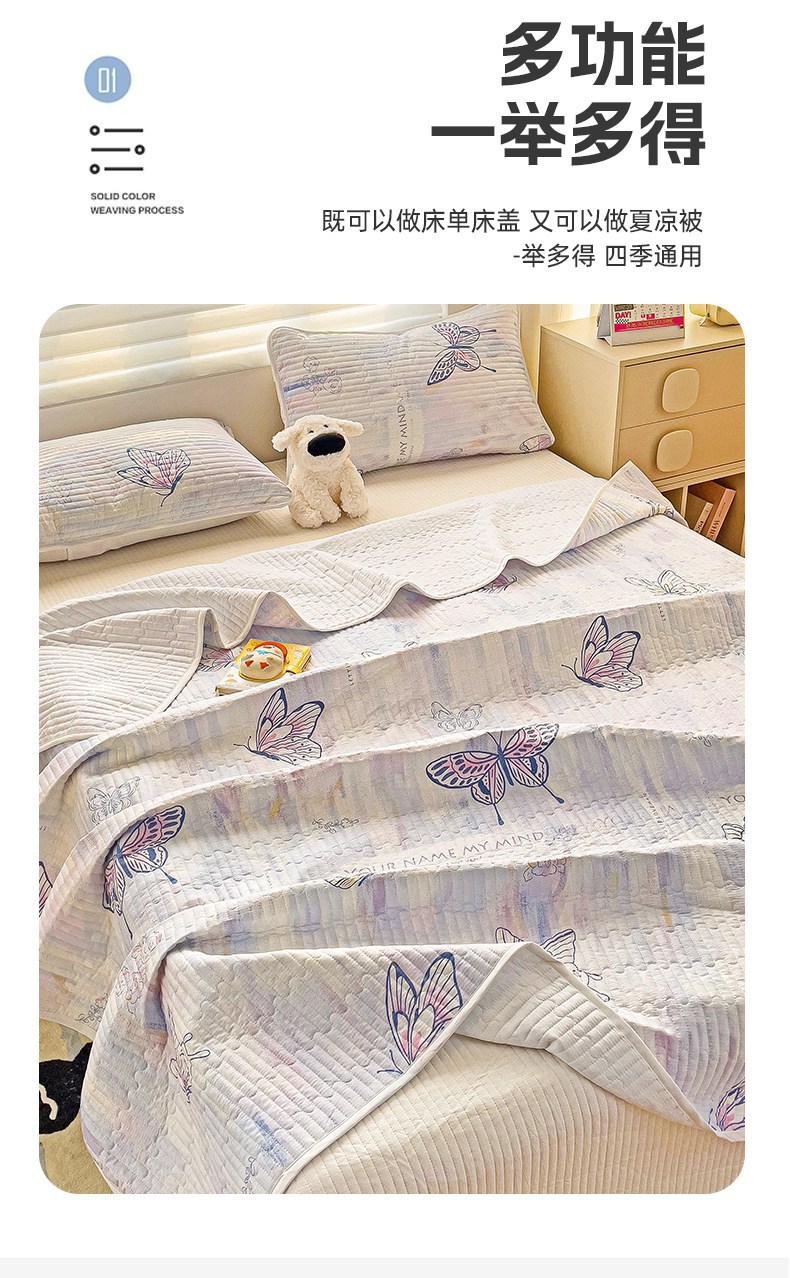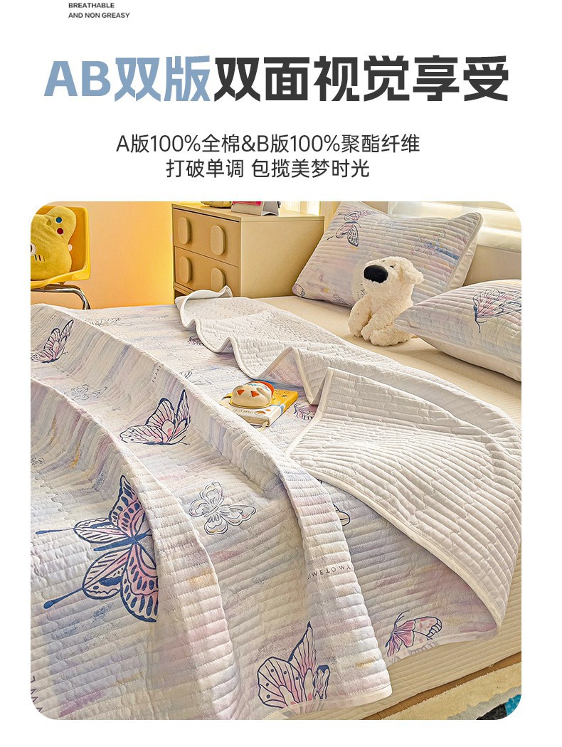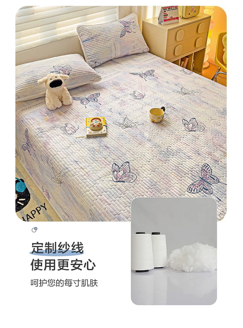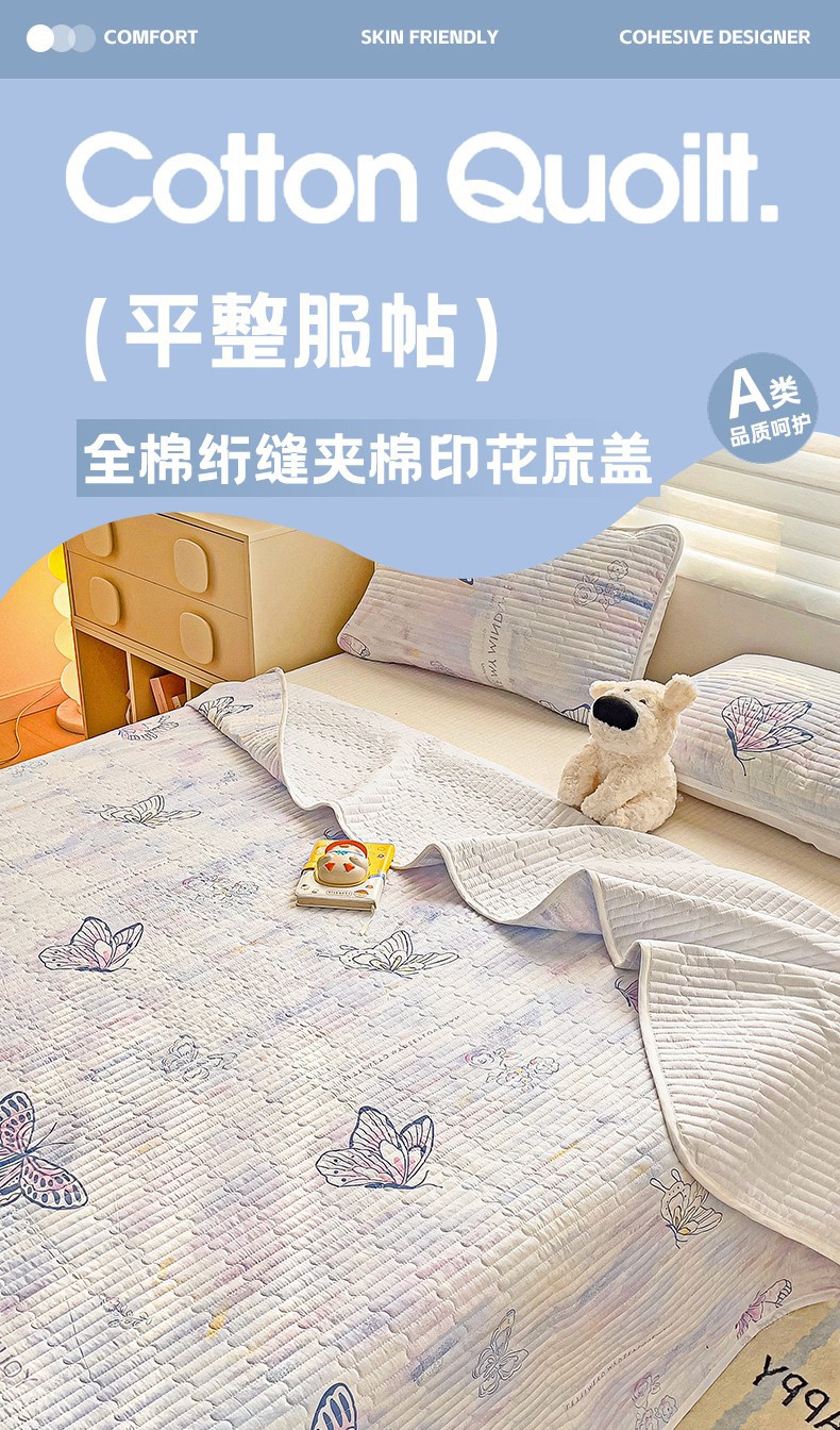 金鑫汇家纺 2025新款全棉绗缝夹棉印花床盖 梦蝶