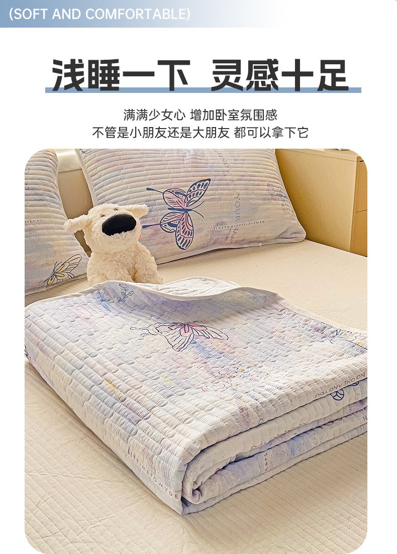 当前位置: 91家纺网 > 商品网购 > 床上用品 > 床盖 > 金鑫汇家纺 2025新款全棉绗缝夹棉印花床盖 梦蝶