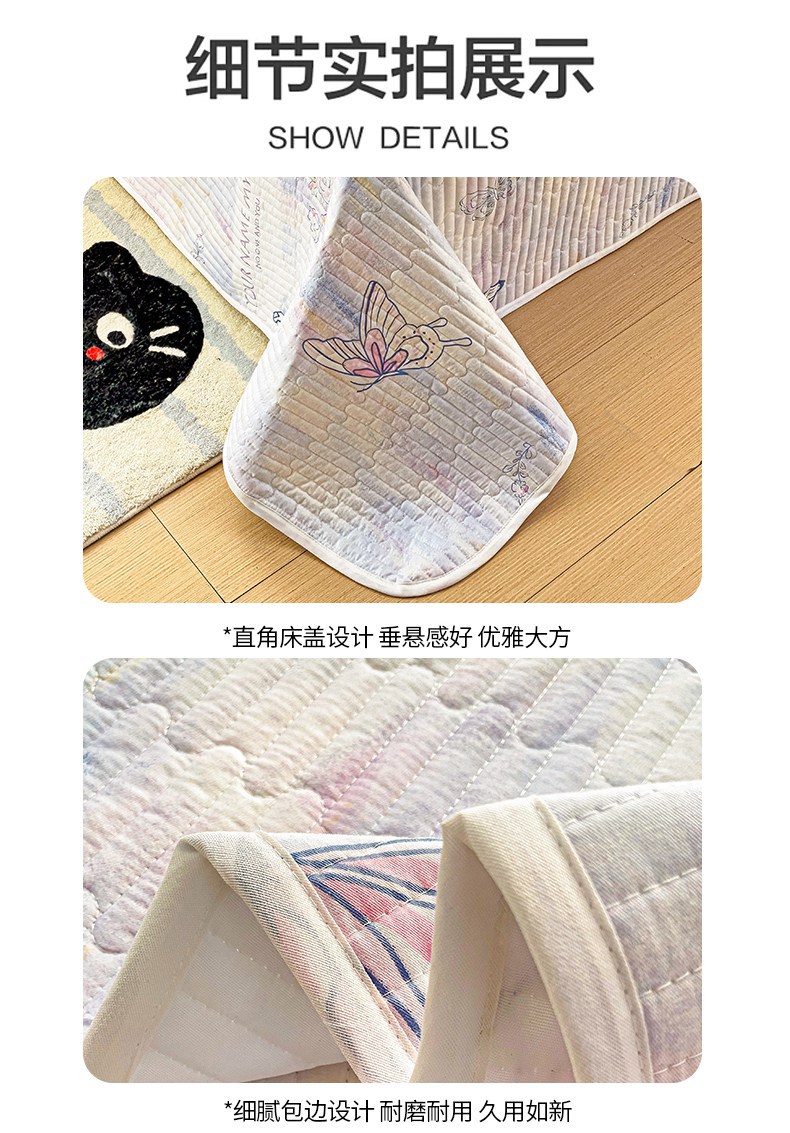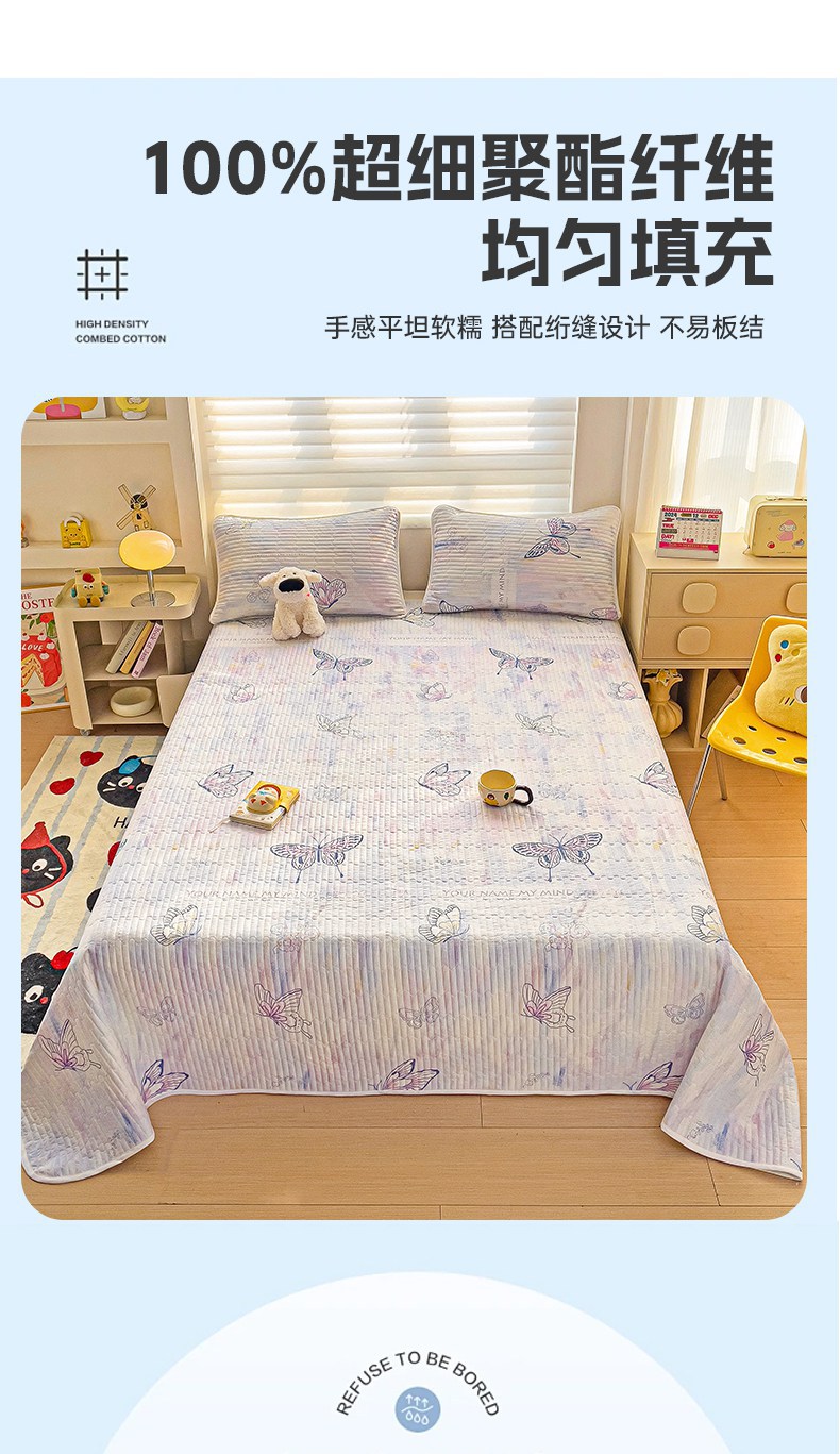 • 91家纺网 家纺一手货源 找家纺 金鑫汇家纺 2025新款全棉绗缝夹棉印花床盖 梦蝶