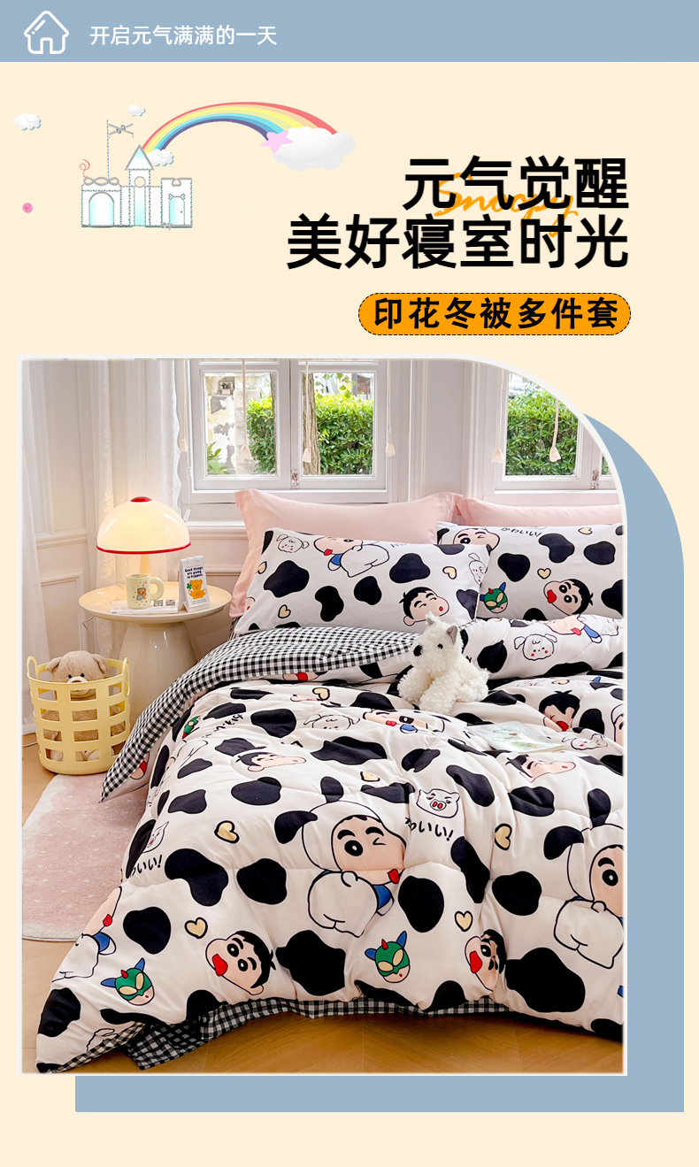 • 91家纺网 家纺一手货源 找家纺 VIP被业 2025新款冬被学生宿舍印花冬被上下铺多套件 小新