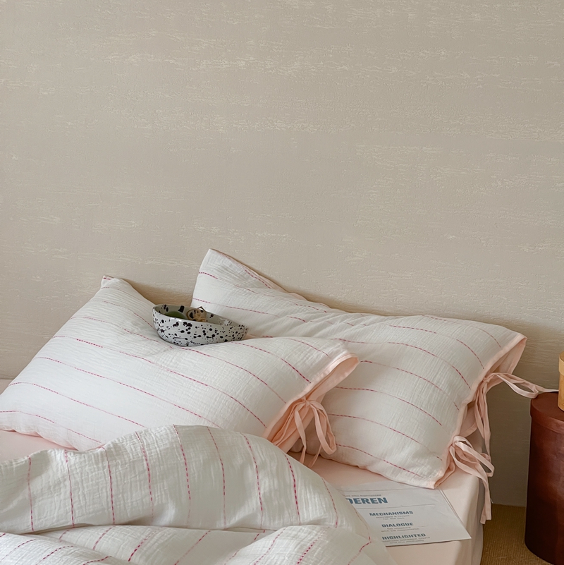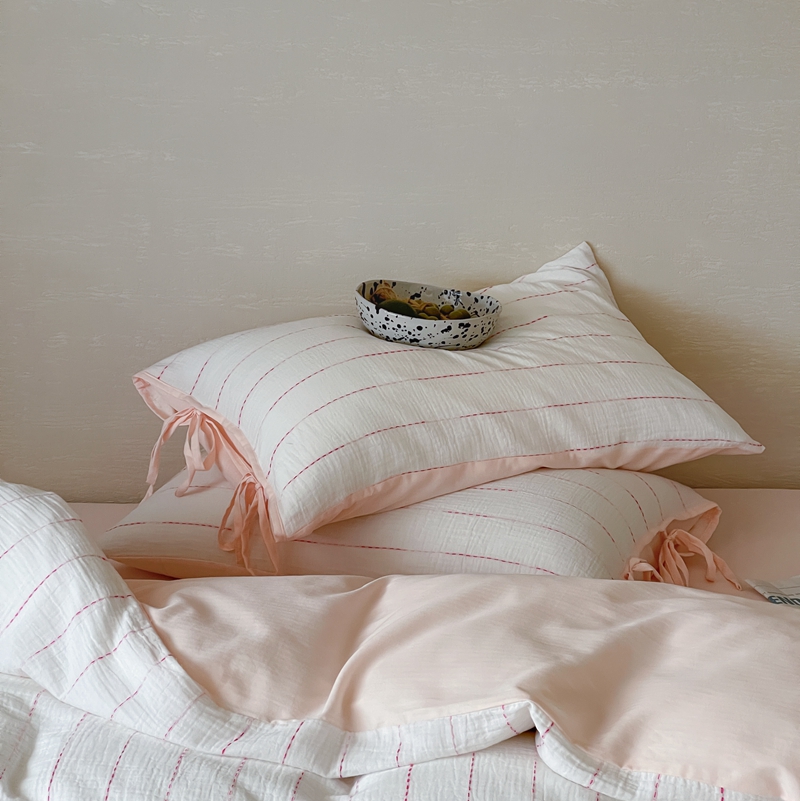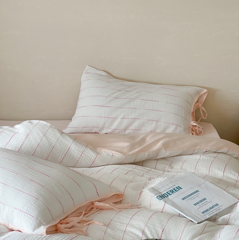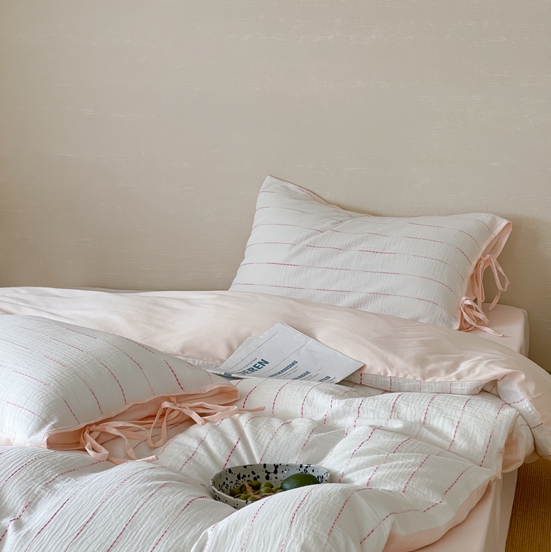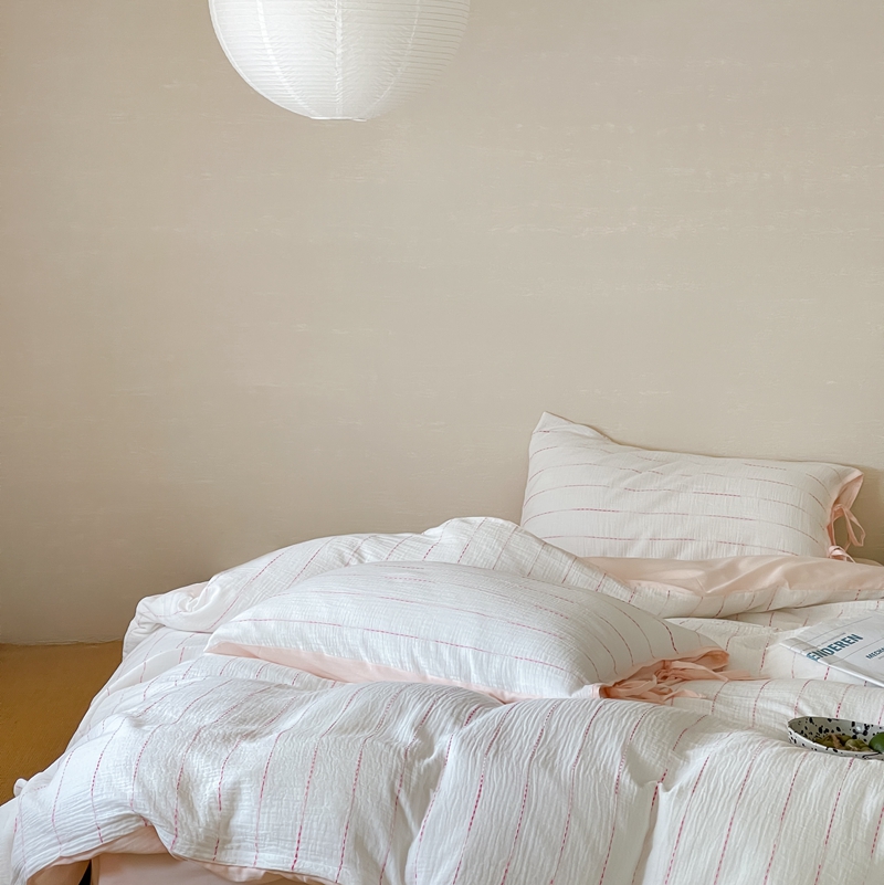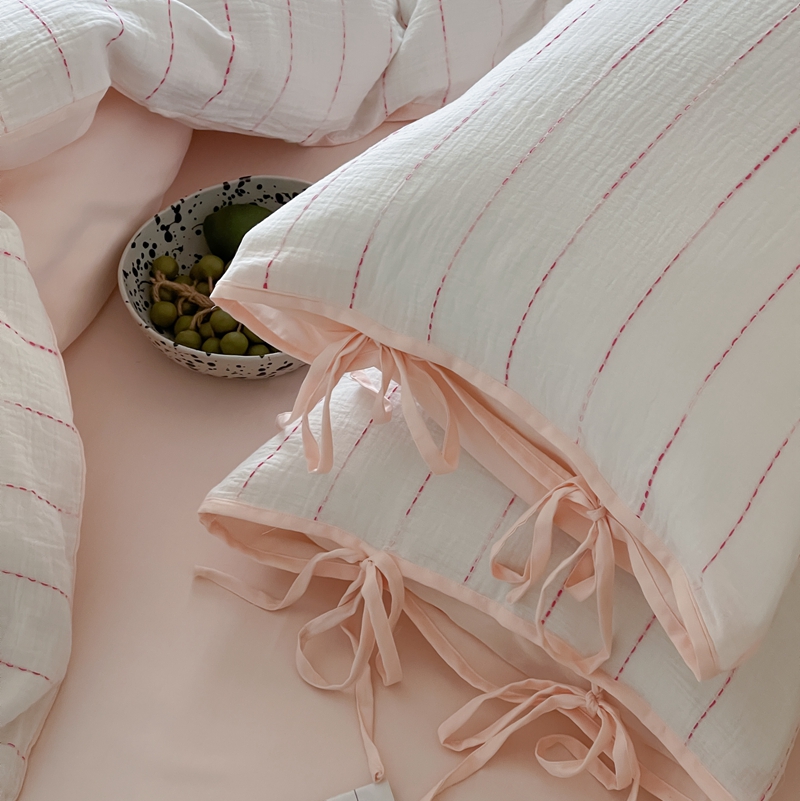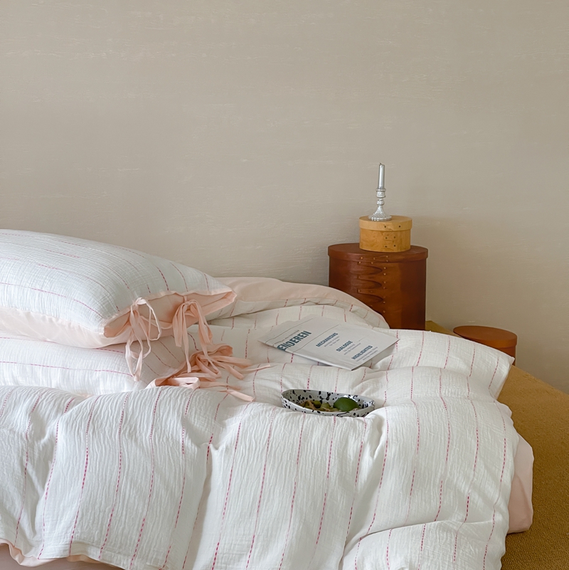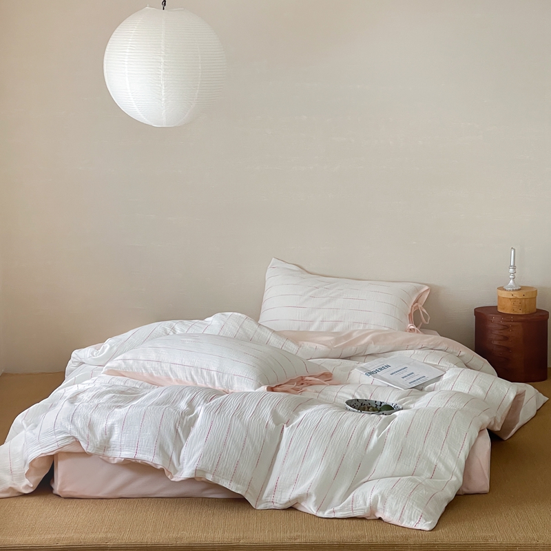 小春日和2025新款皱皱纱水洗穿绳渐变工艺四件套 弥野 粉