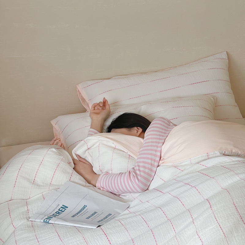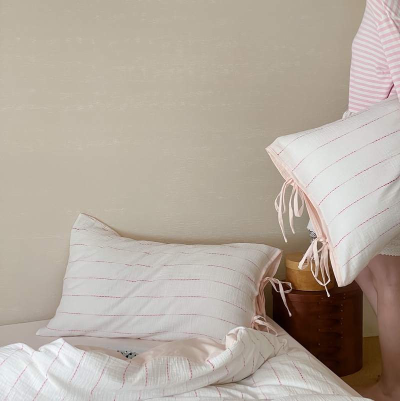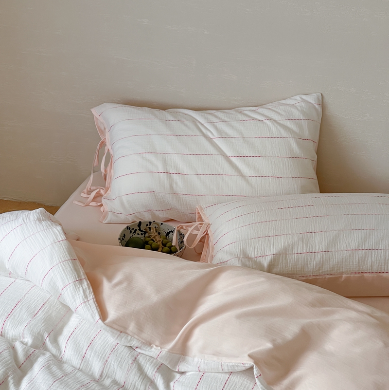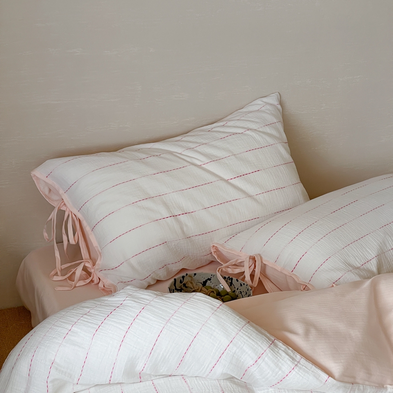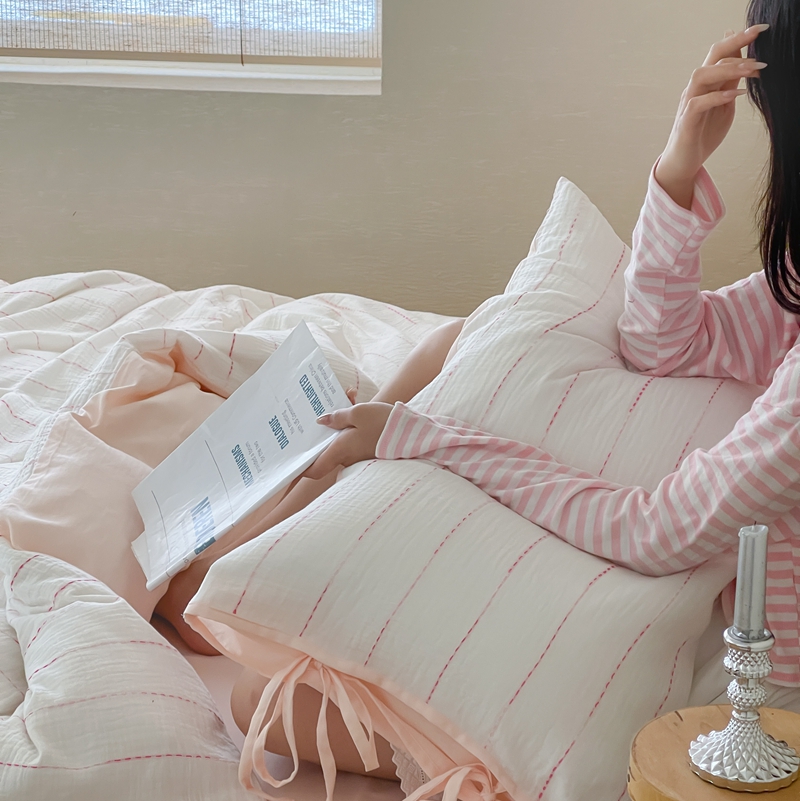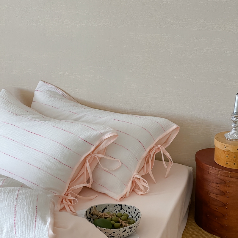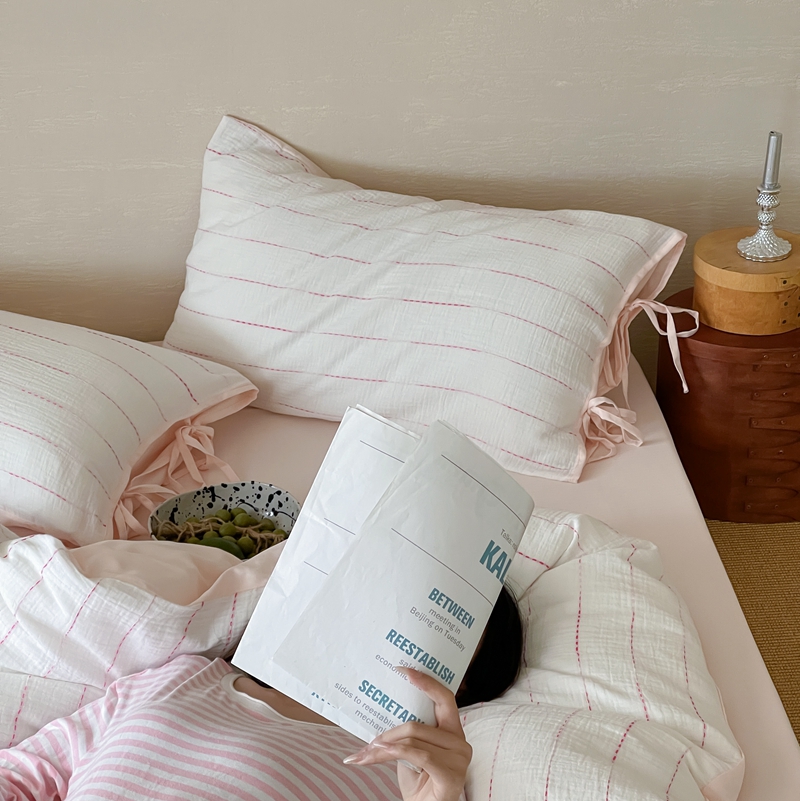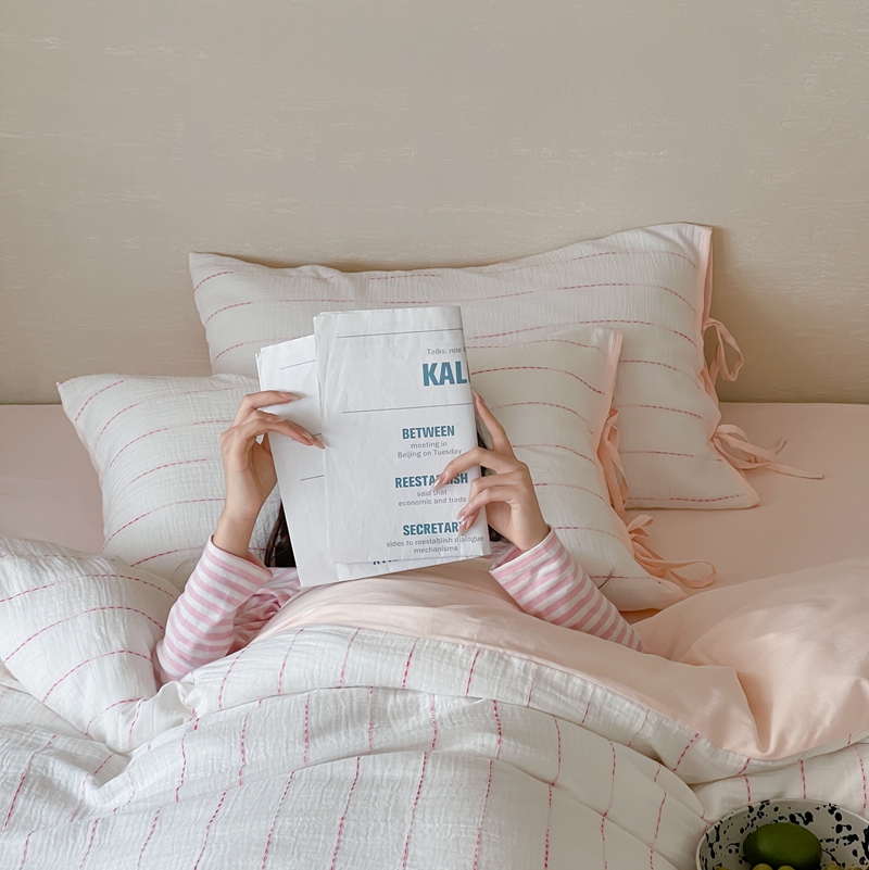 小春日和2025新款皱皱纱水洗穿绳渐变工艺四件套 弥野 粉