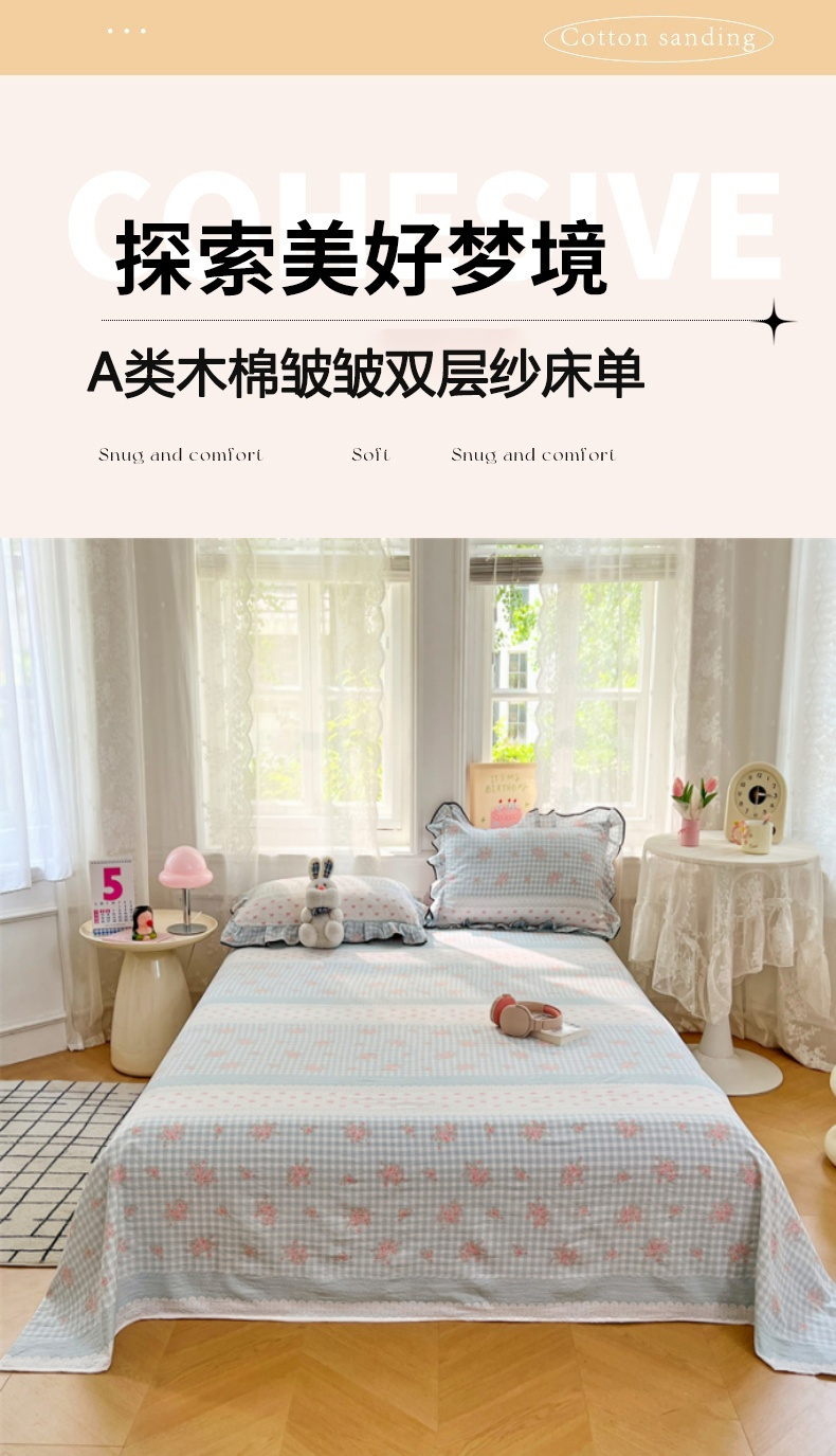 • 91家纺网 家纺一手货源 找家纺 梦舒羽 2025新款皱皱双层纱印花床单浮生若梦-印花床单