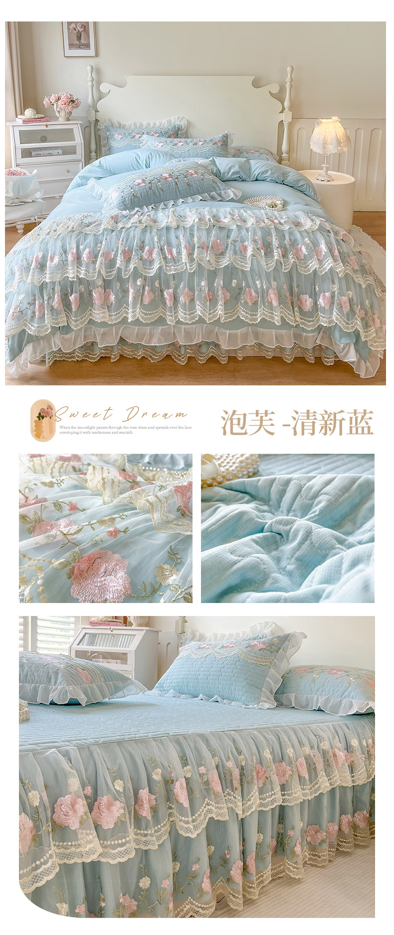 当前位置: 91家纺网 > 商品网购 > 床品套件 > 四件套 > 其它四件套 > 恋尚 2025新款木棉蕾丝床裙四件套-泡芙 泡芙-清新玉