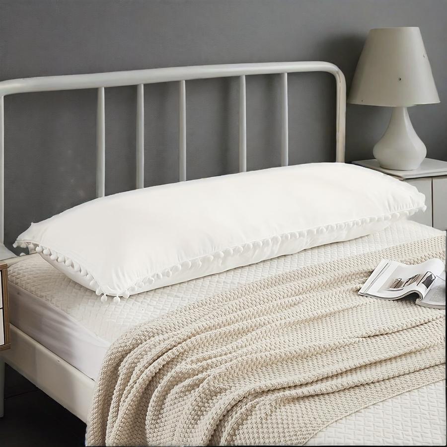 (总)跨境专供 化纤磨毛纯色吊球枕套长枕单枕套51*137