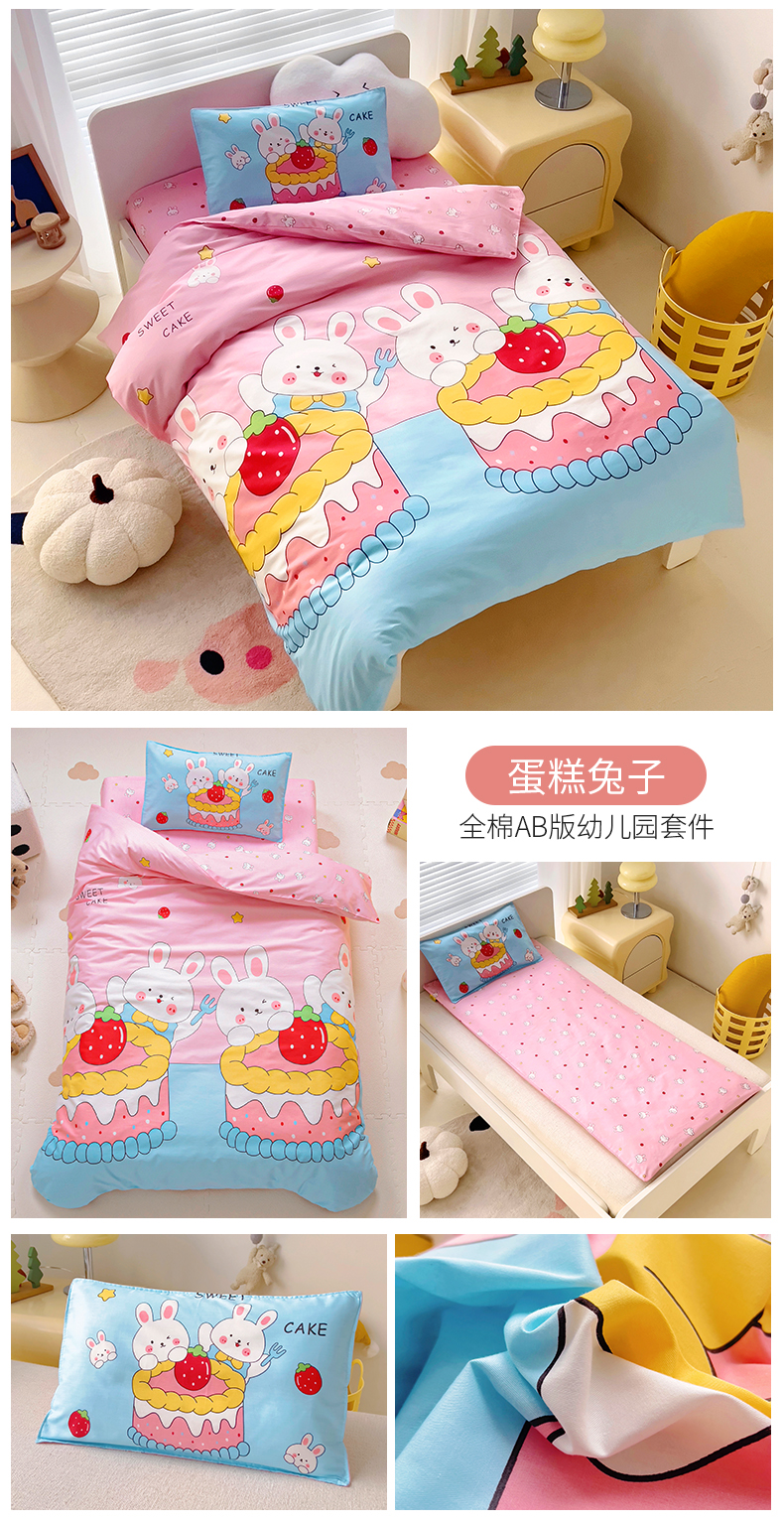 当前位置: 91家纺网 > 商品网购 > 床品套件 > 多件套 > 多件套 > 2025年新款幼儿园全棉被子三件套宝宝入园纯棉六件套被褥午睡被套蛋糕兔子