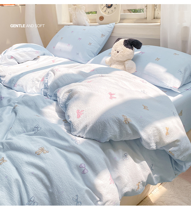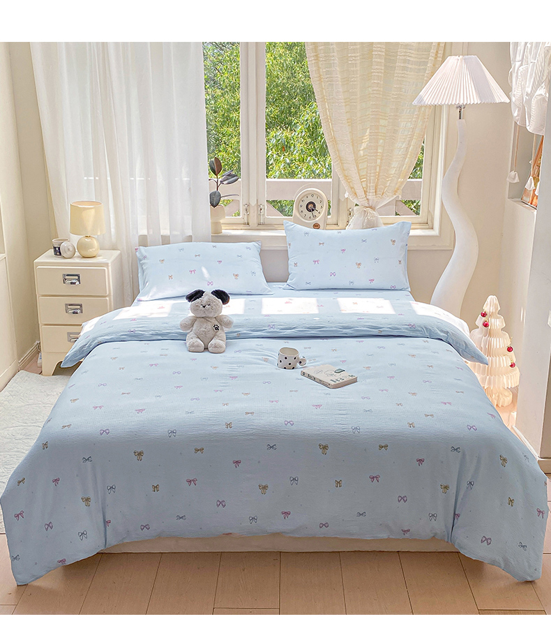 当前位置: 91家纺网 > 商品网购 > 床品套件 > 四件套 > 双层纱四件套 > 眠势力 2025新款云感双层纱四件套床单款床笠款ins奶油风云感超柔 蓝调蝴蝶结