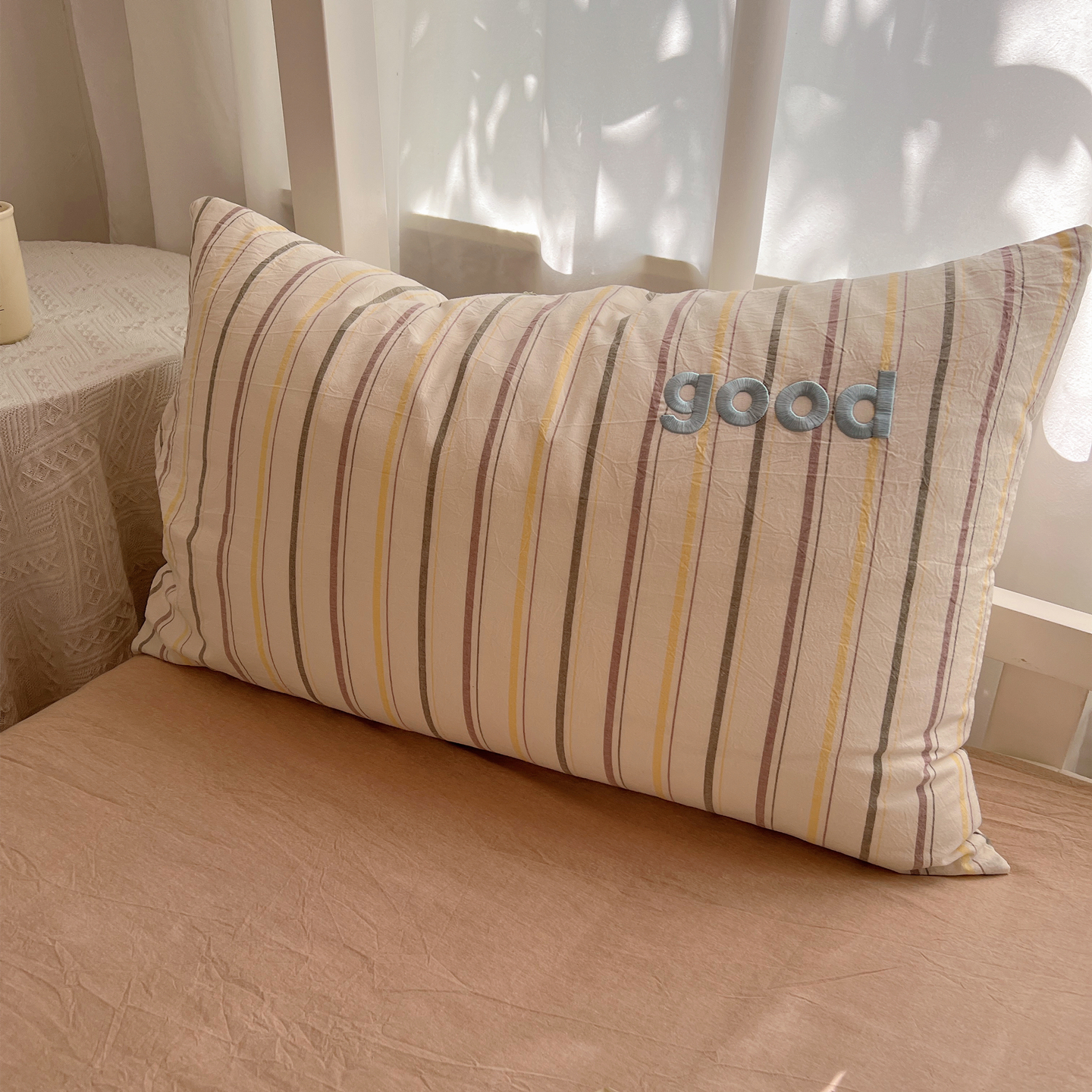 丽涵家纺 2025新款全棉纯棉色织水洗棉刺绣单品枕套枕套单件单枕套-常规单人款 韵律-咖
