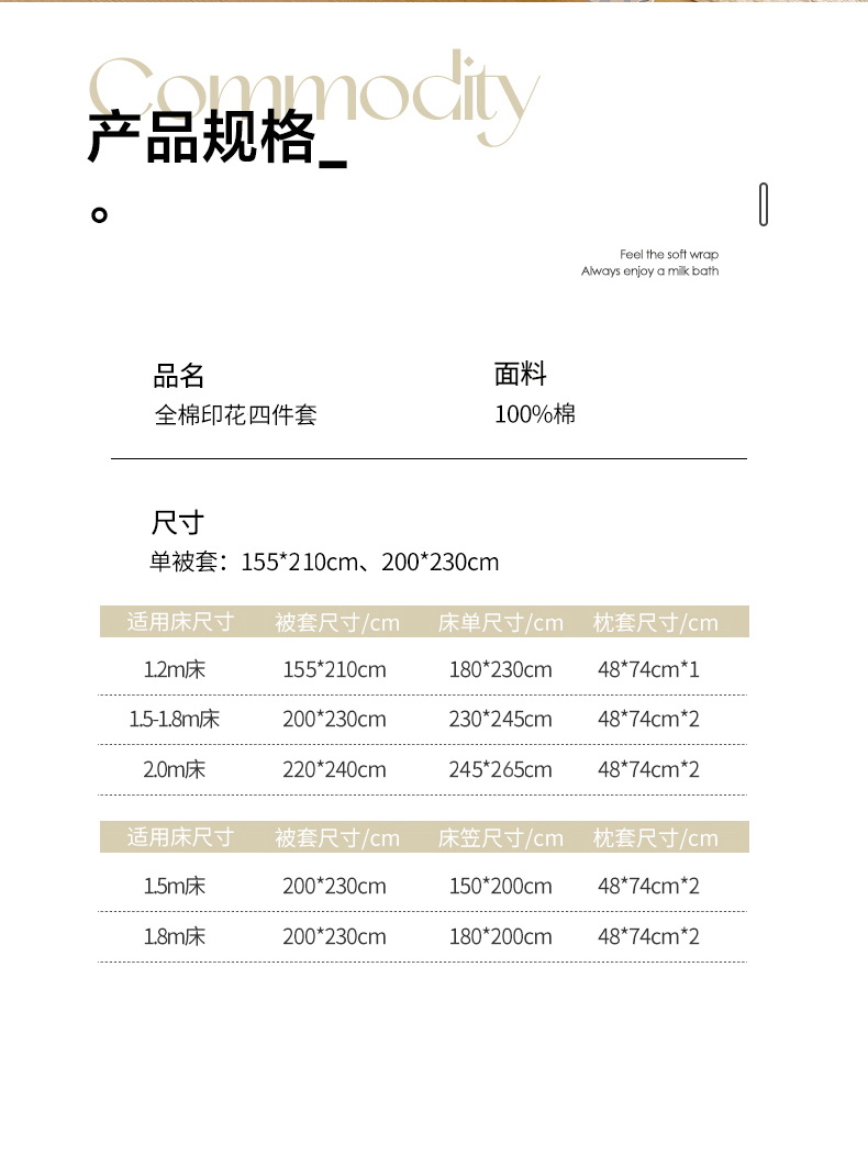 【床单款】1.8四件套-被套200x230 | ¥115.00 |