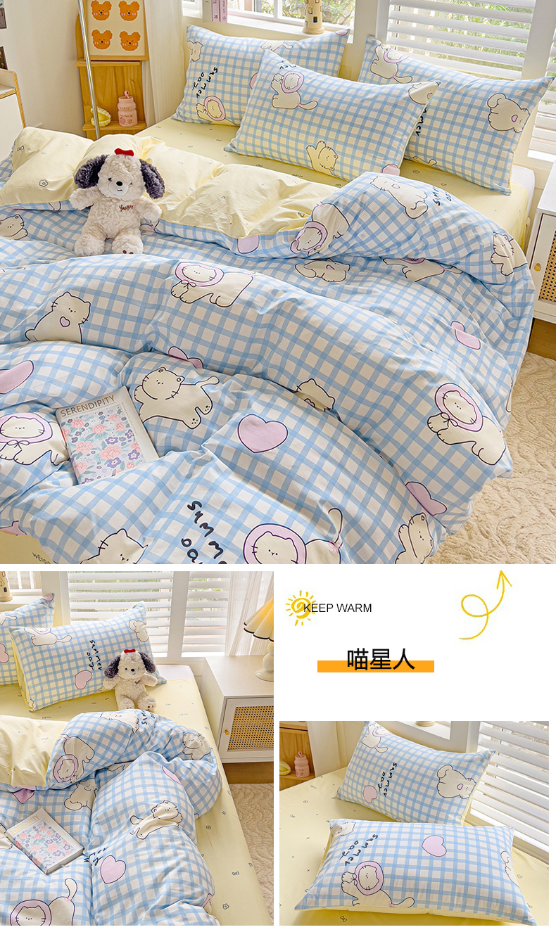 当前位置: 91家纺网 > 商品网购 > 床品套件 > 四件套 > 全棉普通四件套 > 麦伦家居 2025春夏新款全棉纯棉斜纹40s13372系列-小清新卡通 喵星人