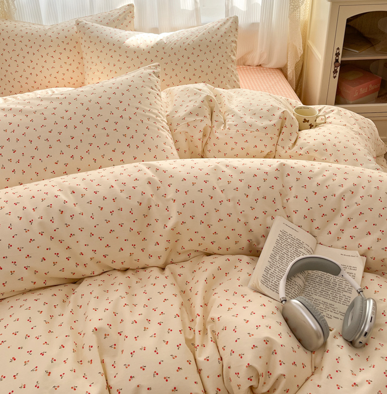 当前位置: 91家纺网 > 商品网购 > 床品套件 > 四件套 > 全棉普通四件套 > 麦伦家居 2025春夏新款全棉纯棉斜纹40s13372系列-小清新卡通 小樱桃-红