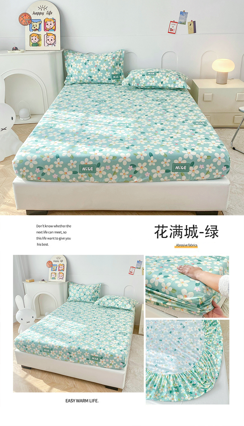 • 91家纺网 家纺一手货源 找家纺 小叮当家纺仓储工厂店 (爆款花型 长期款 不断货)2025年新款条纹卡通花卉纯棉全棉床笠三件套 紫韵花开