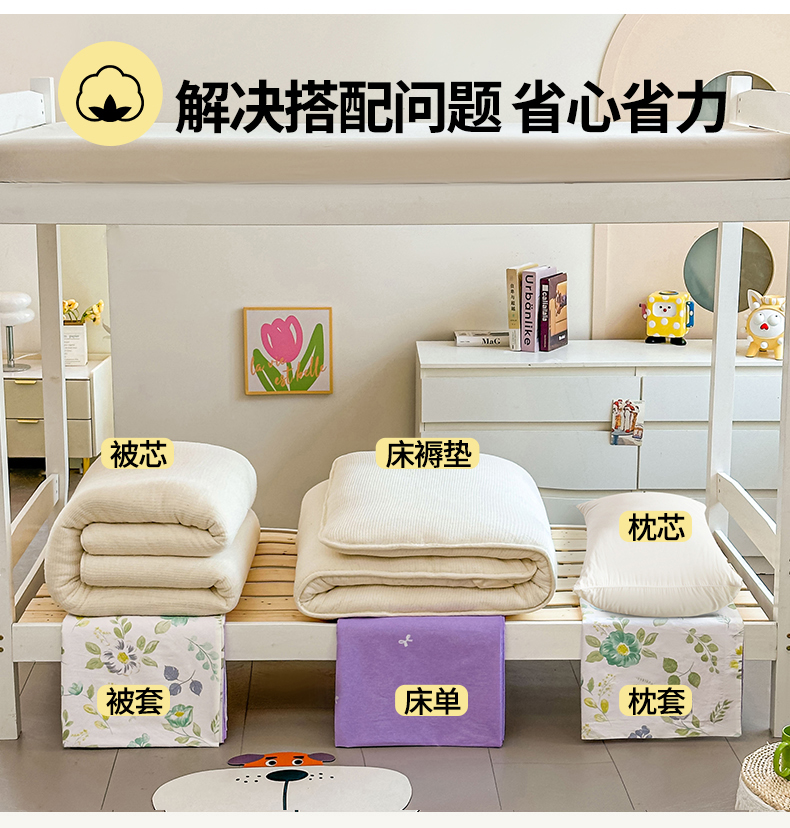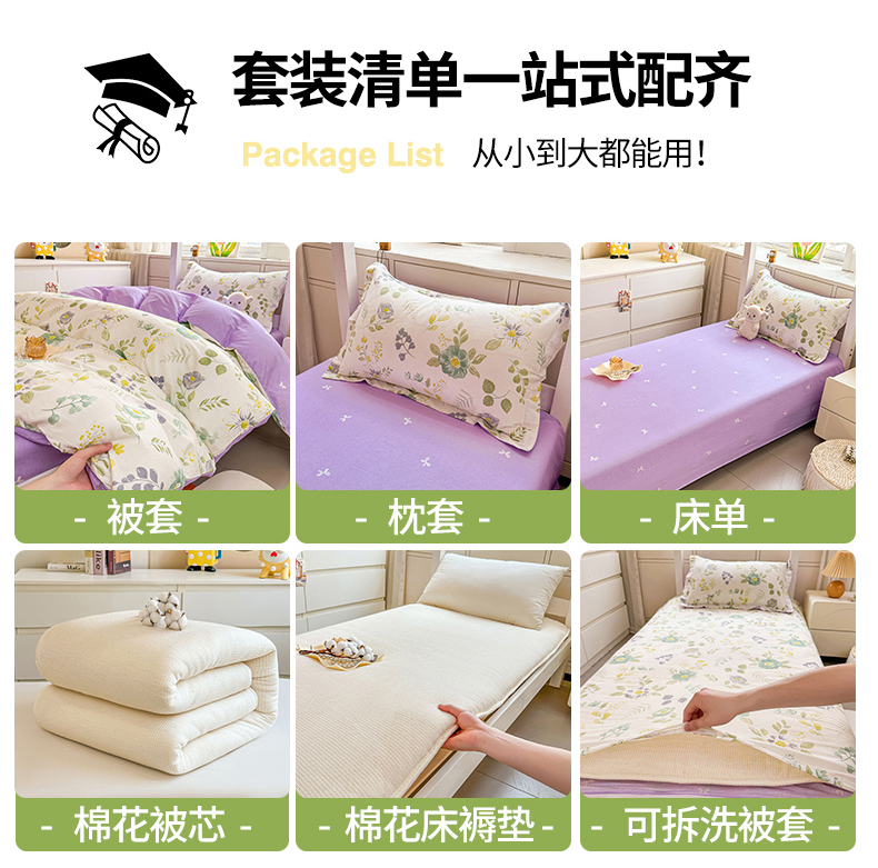 商品名称:西域种棉人·千百笠 2025新款全棉纯棉六件套大学生宿舍100%新疆棉花被子被褥一整套枕头床垫三件套 兰亭花絮