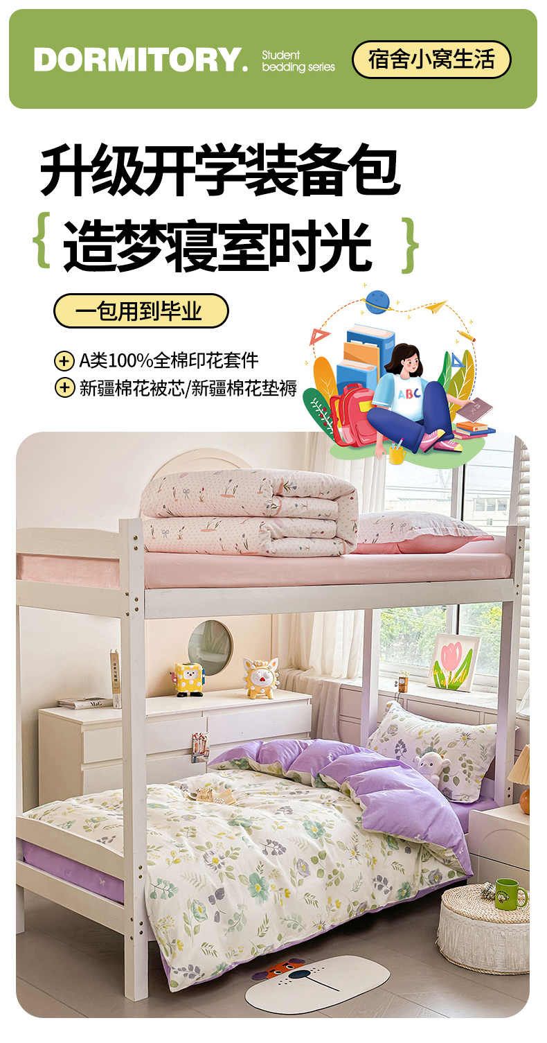 西域种棉人·千百笠 2025新款全棉纯棉六件套大学生宿舍100%新疆棉花被子被褥一整套枕头床垫三件套 兰亭花絮