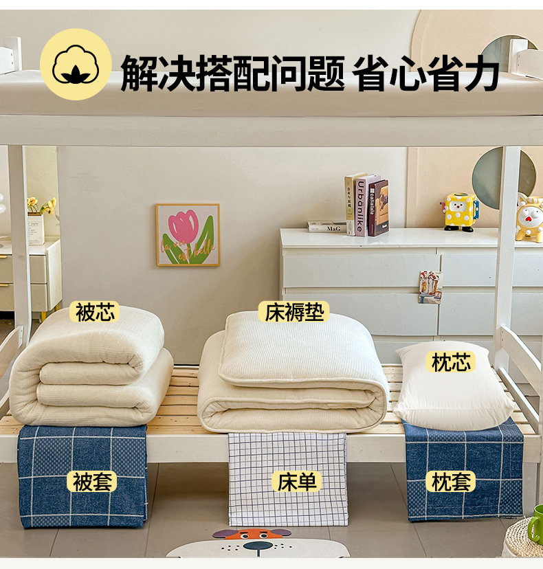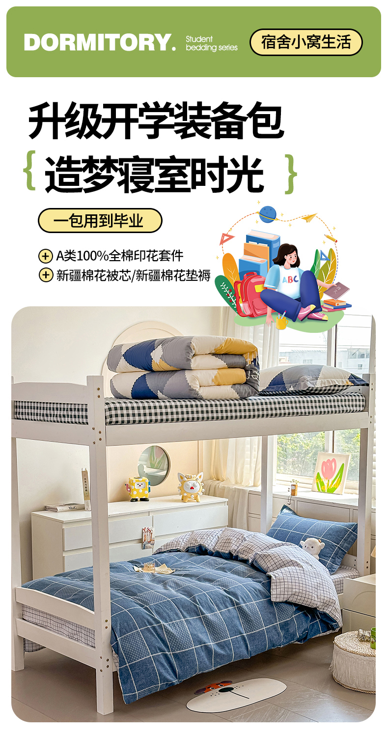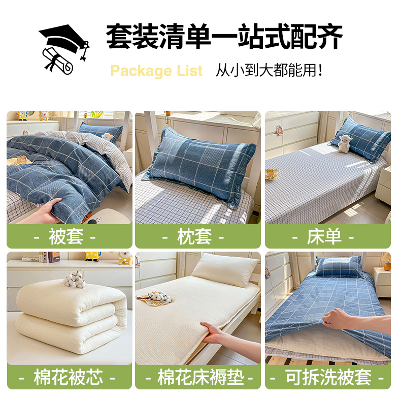 商品名称:西域种棉人·千百笠 2025新款全棉纯棉六件套大学生宿舍100%新疆棉花被子被褥一整套枕头床垫三件套 星空艾格